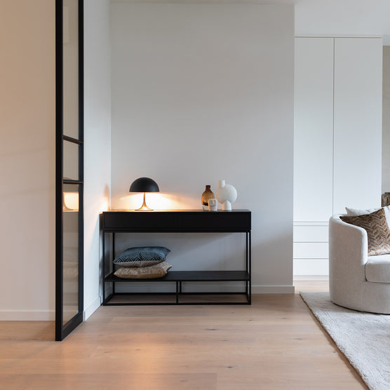 Een wandtafel is een veelzijdig meubelstuk dat in elke woonstijl past. Of je nu houdt van een landelijke, moderne, industriële of klassieke sfeer, er is altijd wel een wandtafel die bij jouw interieur aansluit. Een wandtafel kan je gebruiken als sidetable, als bureau, als kaptafel of als decoratief element. Je kan er allerlei spullen op kwijt, zoals een lamp, een vaas, een spiegel of een fotolijstje. Bij Charrell vind je een uitgebreide collectie van wandtafels in verschillende materialen, kleuren en afmetingen. Je kan ook gaan voor een wandtafel met lades, deuren of open vakken, voor extra opbergruimte. En als je echt iets unieks wilt, kan je ook een console op maat laten maken, helemaal naar jouw wensen en smaak. Een wandtafel is dus een echte aanwinst voor je interieur. Wil je meer weten over onze wandtafels of inspiratie opdoen? Neem dan een kijkje in onze Concept Store. Wij helpen je graag met het vinden van jouw ideale wandtafel.