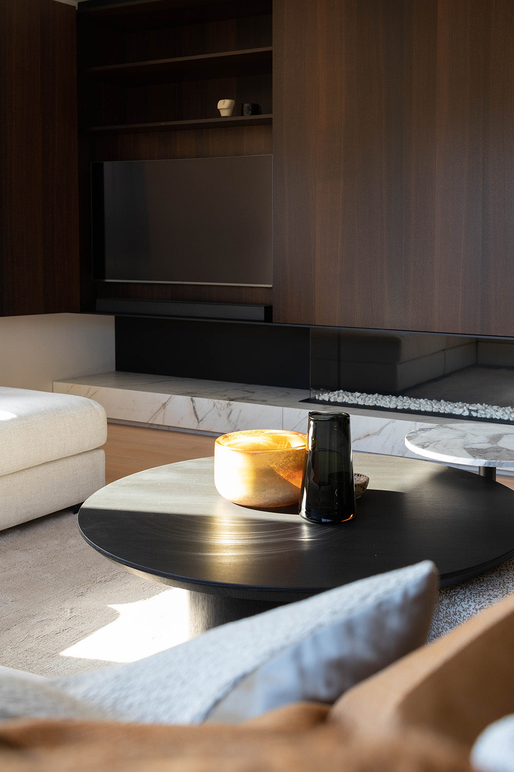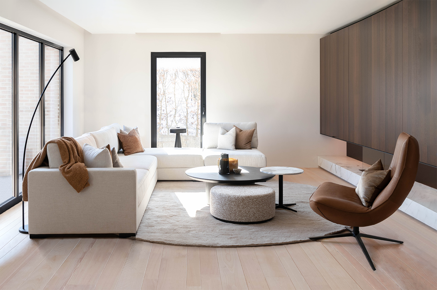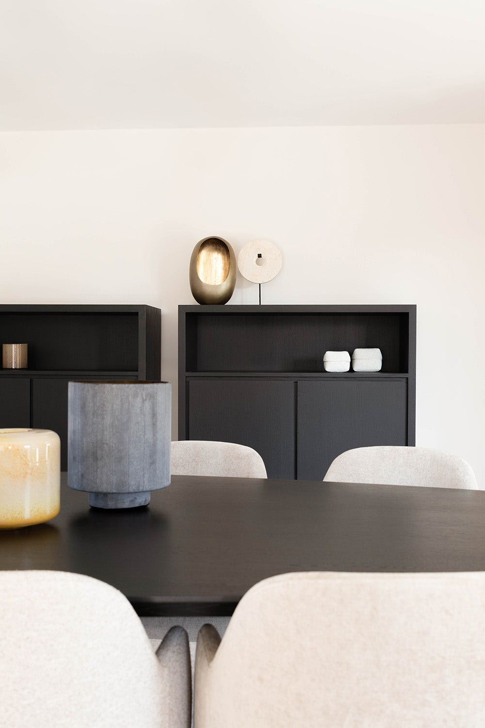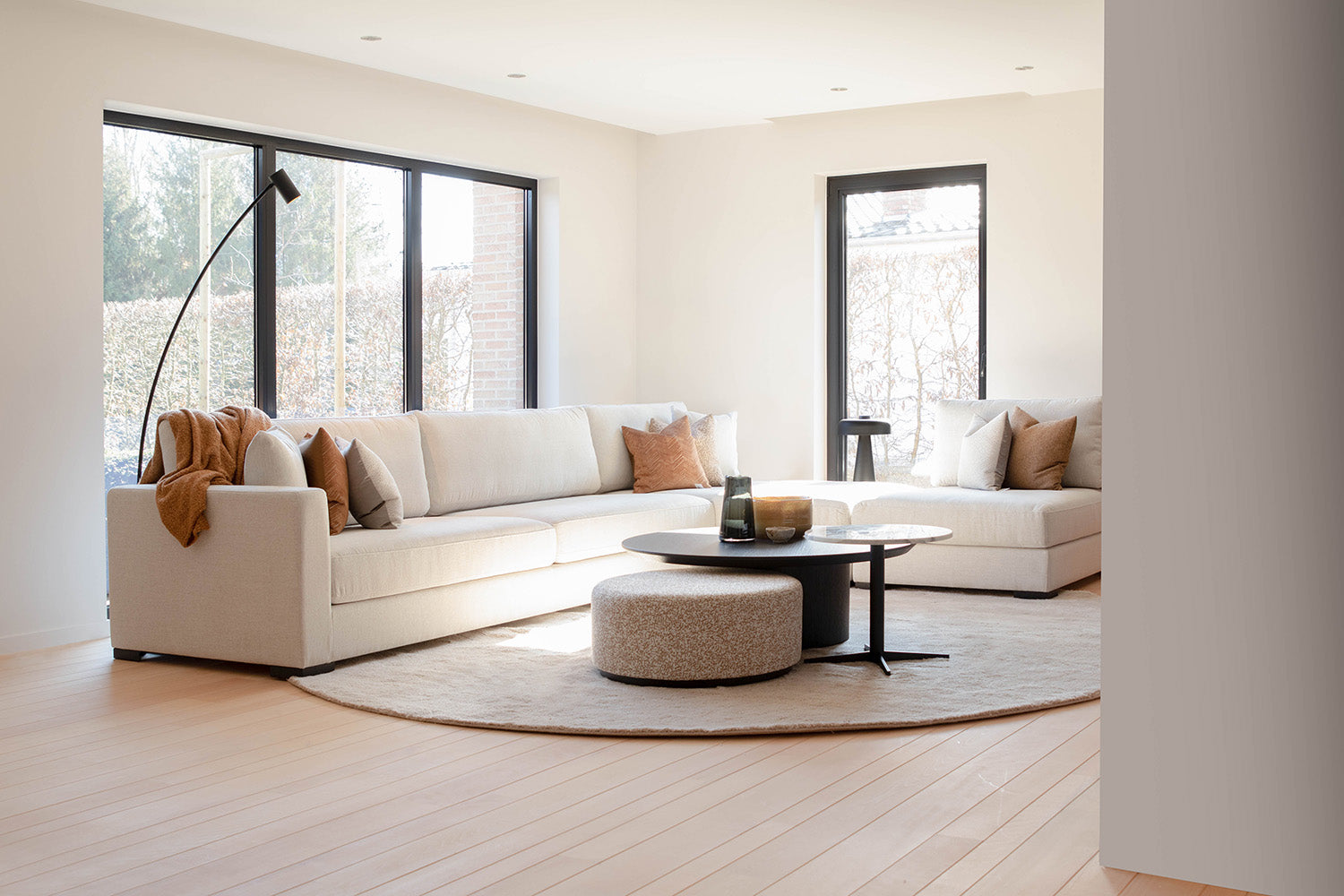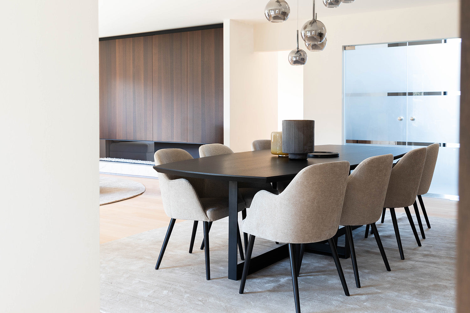 Het klinkt als een doordacht renovatieproject waarbij aandacht voor detail en harmonie centraal staan. Het opschuren van de houten vloer heeft ongetwijfeld de natuurlijke schoonheid en warmte van het hout naar voren gebracht, terwijl de combinatie van warme en koele accenttinten een evenwichtige en uitnodigende sfeer creëert. Maatwerk voor het haard- en tv-meubel zorgt voor een naadloze integratie met de bestaande keuken, wat bijdraagt aan de cohesie van het ontwerp. Het gebruik van organische en ronde vormen in de meubelstukken geeft een zachte en natuurlijke flow aan de ruimte, terwijl het accent van Calacatta Gold keramiek een vleugje luxe en verfijning toevoegt. Dit tijdloze design zal ongetwijfeld jarenlang esthetisch plezier en comfort bieden.