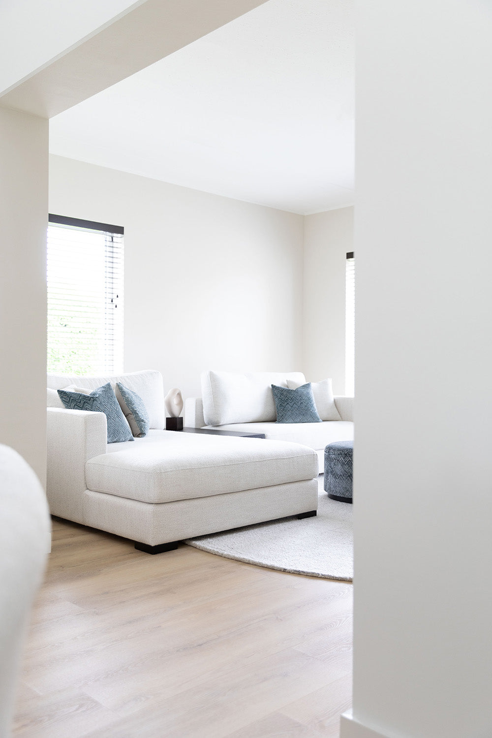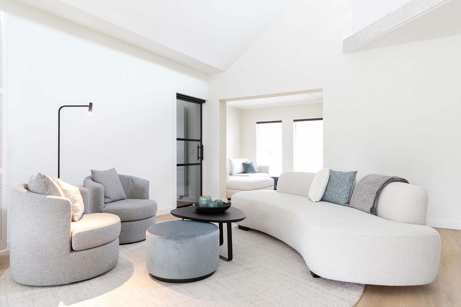 Het herinrichten van een woning kan een verfrissende verandering teweegbrengen, waarbij het opknappen van de vloer, het schilderwerk en de meubels een nieuwe energie in de ruimte brengen. Een loungehoek die dient als ontvangstruimte voor gasten, moet uitnodigend en comfortabel zijn, terwijl de zithoek een gezellige plek moet zijn om te ontspannen en televisie te kijken. Het gebruik van harmonieuze kleuren en stoffen die naadloos in elkaar overvloeien, creëert een gevoel van eenheid en rust. Lichte stoffen met subtiele blauwe accenten kunnen een frisse en kalme sfeer oproepen, terwijl afgeronde vormen bijdragen aan een zachte en uitnodigende ambiance. Deze elementen samen zorgen voor een ruimte waar men zich onmiddellijk thuis voelt.