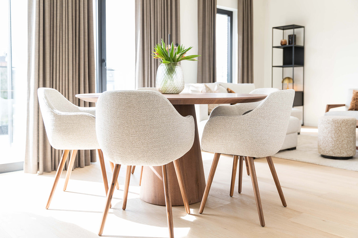 De keuze voor notelaar meubels in een nieuwbouw appartement kan een uitstekende manier zijn om een warme en tegelijkertijd moderne uitstraling te creëren. Notelaar, bekend om zijn duurzaamheid en prachtige tekening, brengt een exclusieve sfeer in elk interieur. Het afstemmen van de meubels op die van de keuken zorgt voor een harmonieuze overgang tussen de ruimtes. De combinatie van notelaar met frisse kleuren in de stoffen kan het geheel een levendige, maar ook rustgevende uitstraling geven waarbij er een balans wordt gezocht tussen comfort en esthetiek. Het is interessant om te zien hoe deze elementen samen een cohesief design vormen dat zowel uitnodigend als stijlvol is.
