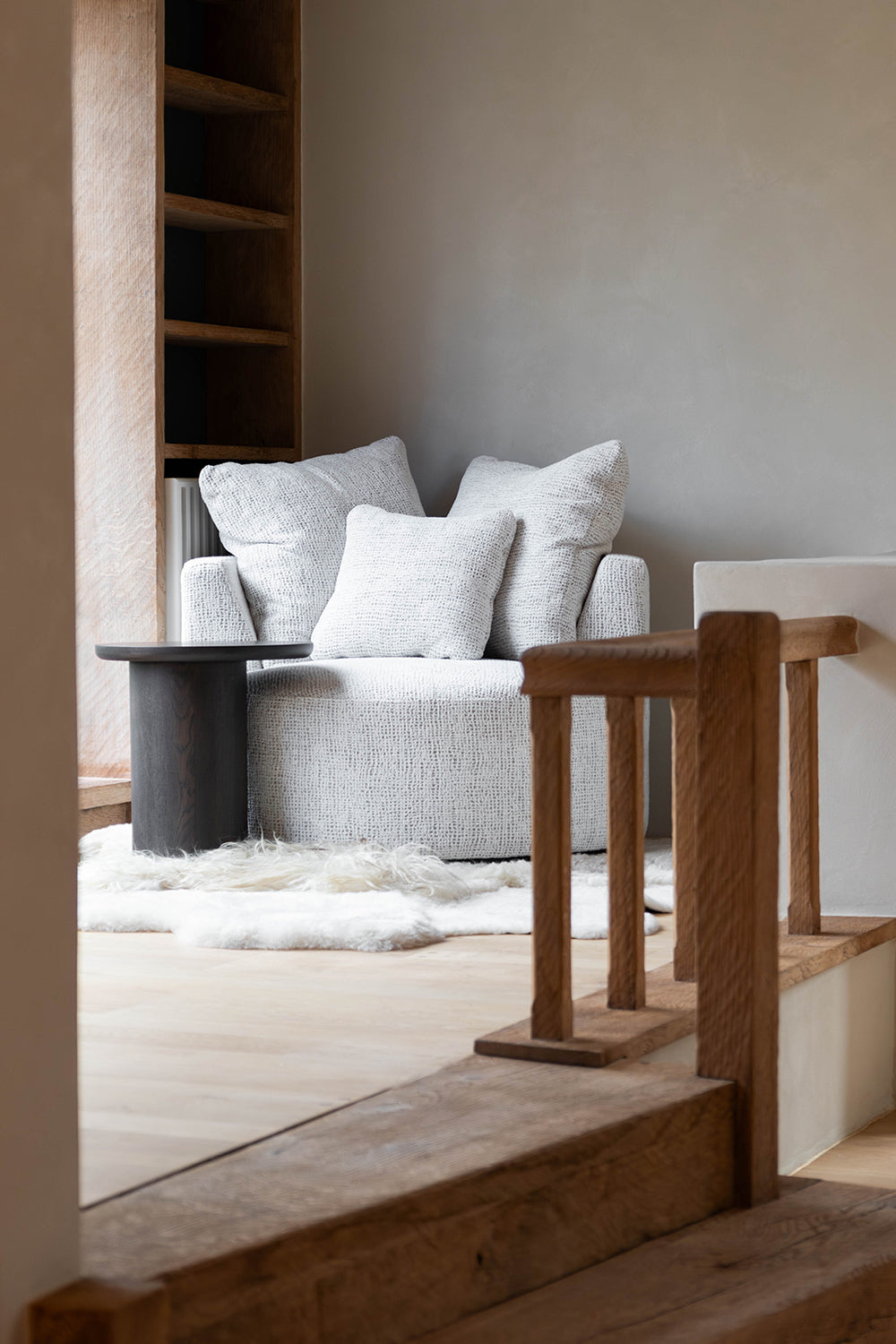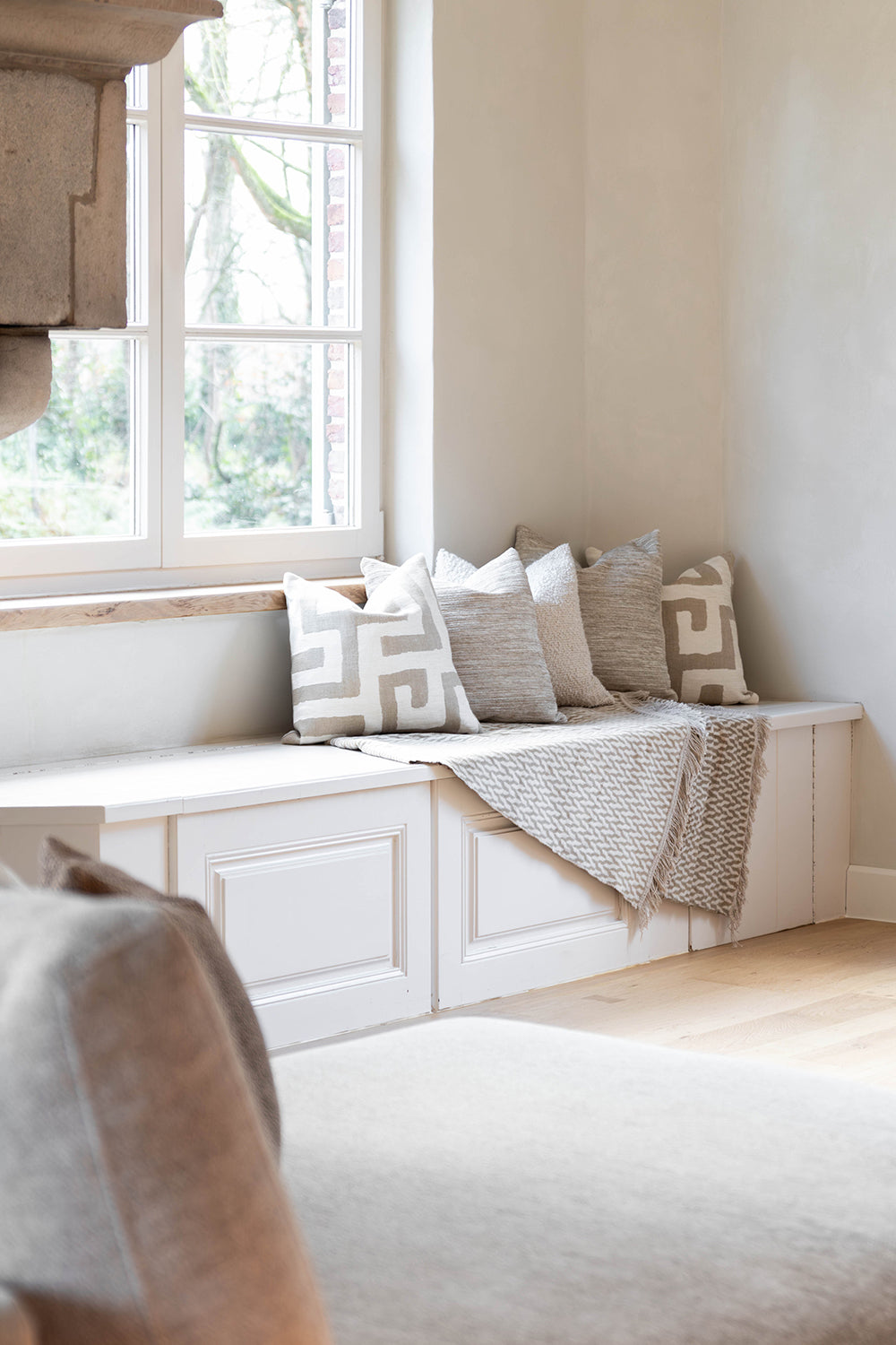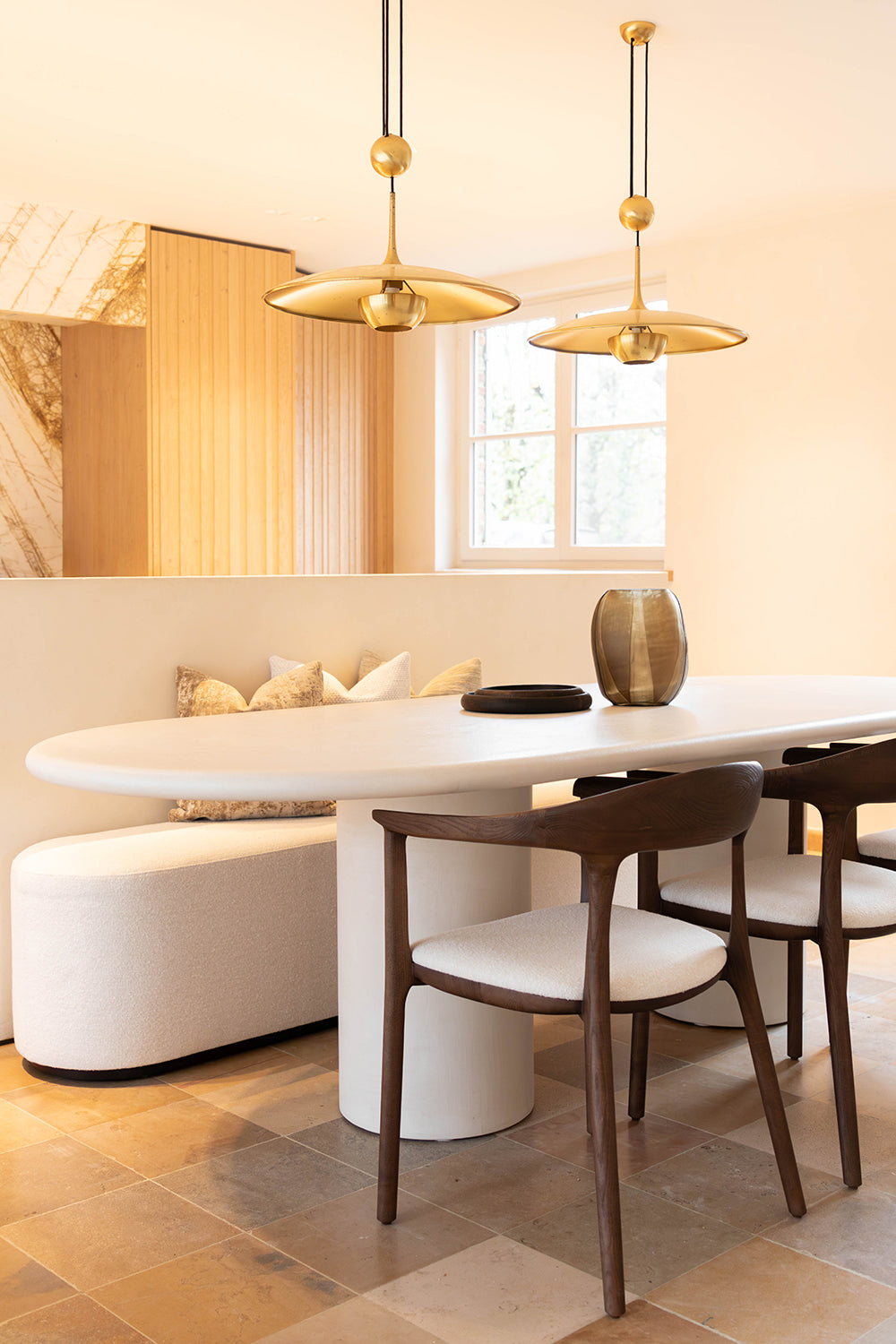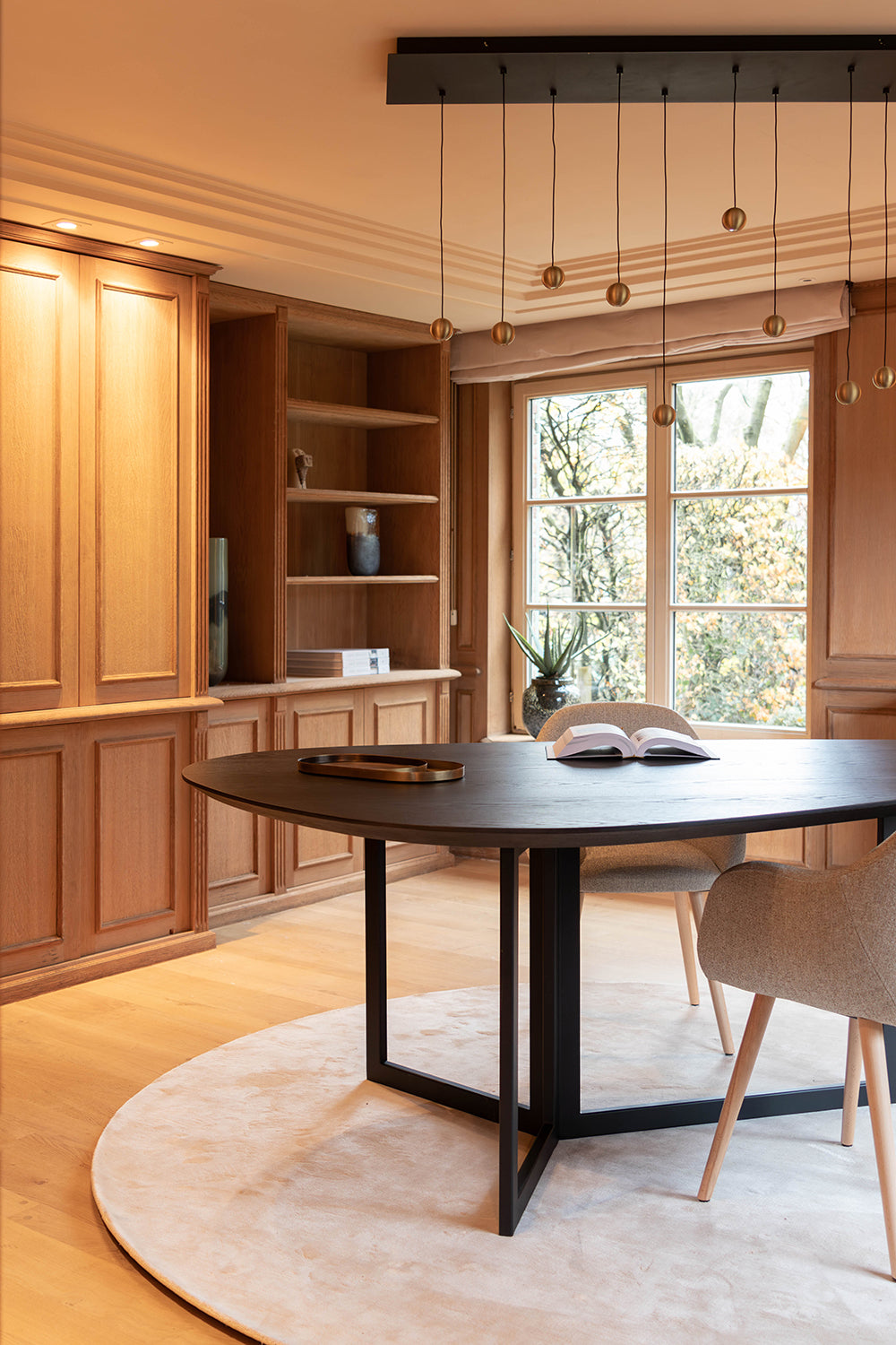 Het transformeren van een klassieke hoeve tot een landelijk moderne, tijdloze woning is een prachtige manier om het verleden te eren terwijl men geniet van hedendaags comfort. De enorme gezinszetel wordt het hart van de woning, een plek waar gezelligheid en warmte samenkomen. De aandacht voor detail is zichtbaar in de afwerking, waarbij sfeervolle wandverlichting een intieme ambiance creëert. De grote houten eettafel nodigt uit tot het houden van feesten en samenkomsten, terwijl de mortex afwerking in de keuken een subtiele moderne twist geeft. Dit alles draagt bij aan een woning die niet alleen een thuis is, maar ook een statement van stijl en gezelligheid.