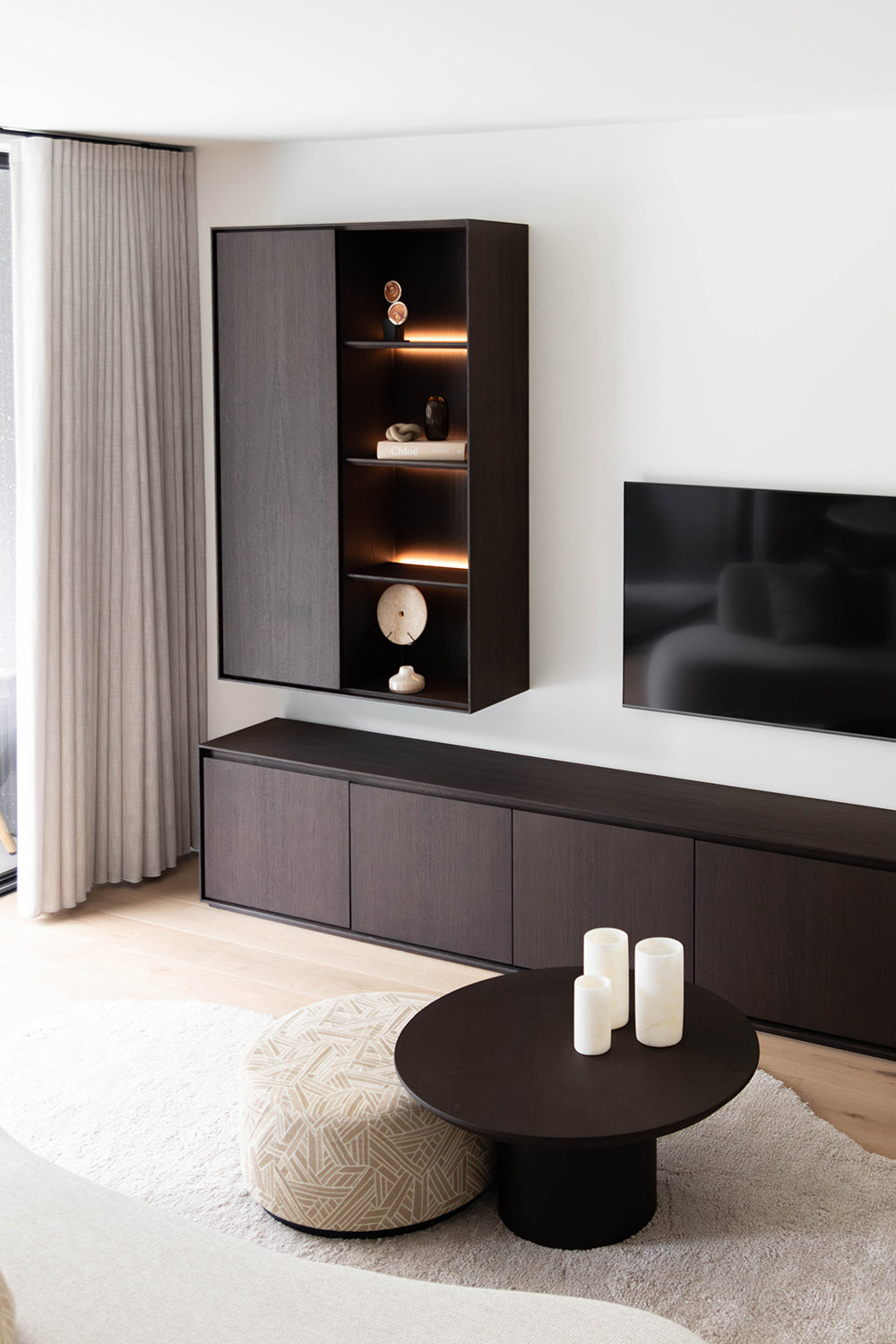 Het ontwerpen van een interieur voor een tweede verblijf aan de kust vereist een slimme benadering van ruimtebeheer, vooral als de beschikbare ruimte beperkt is. In Nieuwpoort, een plaats bekend om zijn prachtige kustlijn en luxe uitstraling, kan een klein appartement worden getransformeerd tot een verfijnde ontsnapping met de juiste inrichting. Het gebruik van lichte kleuren en natuurlijke materialen kan een gevoel van openheid creëren, terwijl het behoud van een uniform kleurenpalet door het hele appartement zorgt voor een naadloze esthetische stroom. Meubels die zowel functioneel als esthetisch zijn, dragen bij aan een optimale benutting van de ruimte, terwijl speelse en organische vormen een moderne en ontspannen sfeer toevoegen. Het resultaat is een harmonieus en uitnodigend interieur dat de essentie van een kustwoning vangt, perfect voor ontspanning na een dag genieten van de zeelucht.