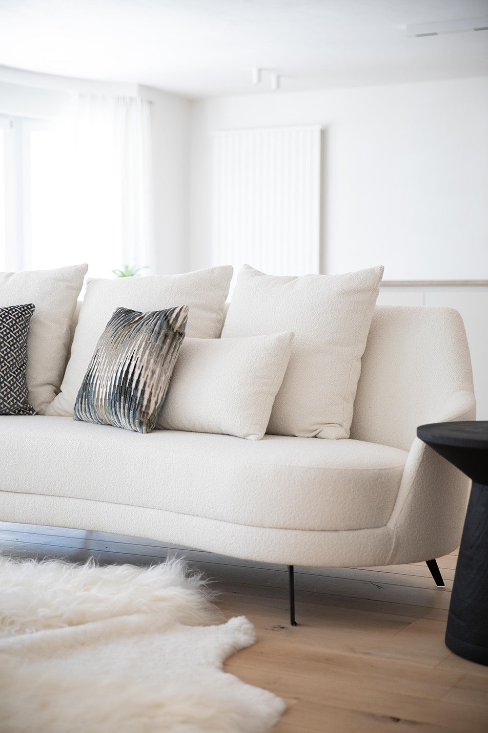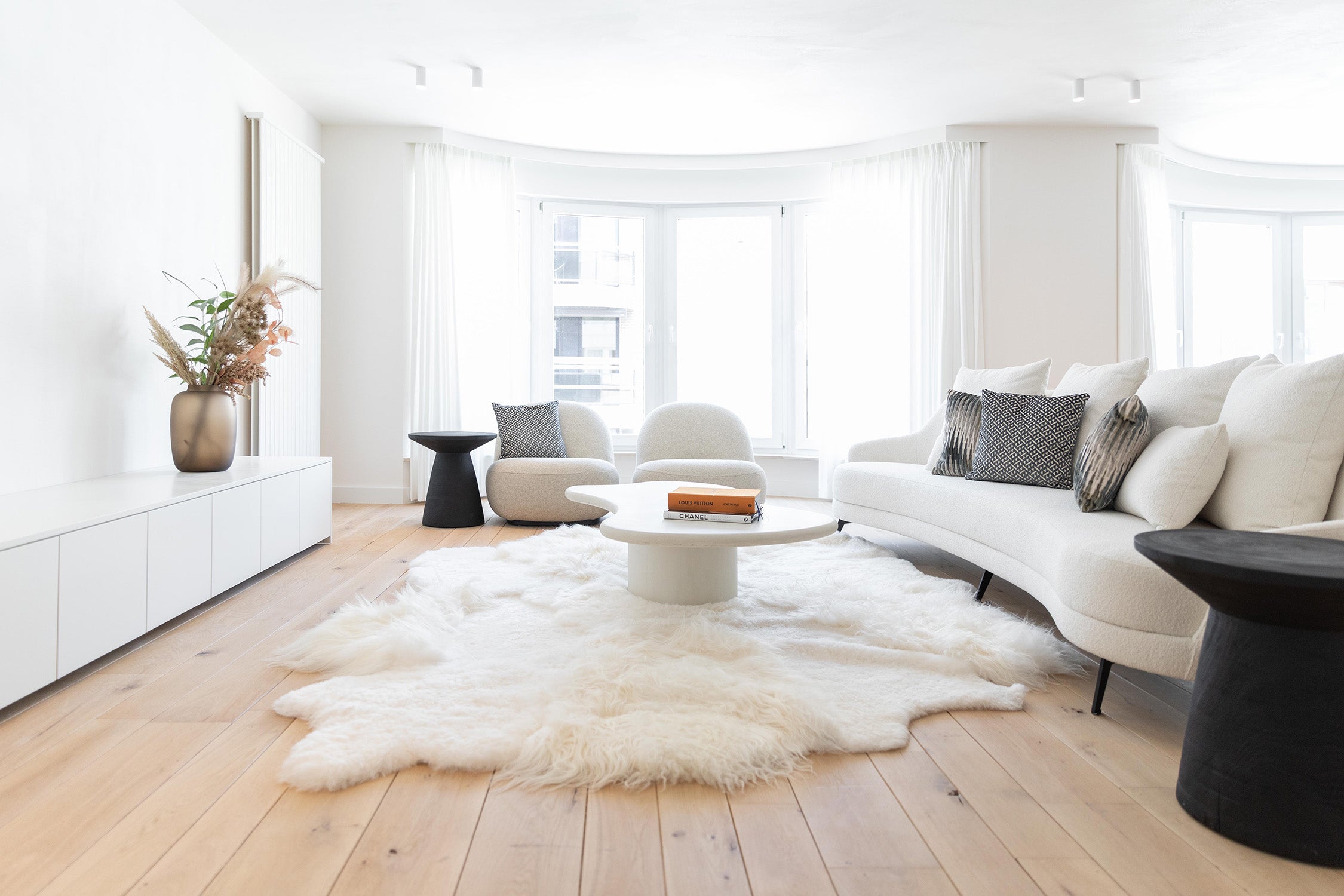 WIj hielpen de klant verder met de inrichtingen van zijn vastgoed appartement aan de zee. voor een vlotte verkoop is styling een echte must en daar konden wij goed bij helpen. Bij de inrichting moet de sfeer van de kust worden gevangen zonder de functionaliteit van de ruimte te verliezen. Door het gebruik van frisse tinten en blauwe accenten wordt een sfeer gecreëerd die de zee weerspiegelt, terwijl lichte kleuren de perceptie van de ruimte vergroten. Meubels zoals de sofa Asuri op pootjes dragen bij aan een gevoel van openheid en luchtigheid. Een schapen tapijt voegt een element van warmte en comfort toe, wat essentieel is voor het creëren van een uitnodigende sfeer. De mortex salontafel Presso, bekend om zijn duurzaamheid en veelzijdigheid, past naadloos in dit kustthema en versterkt het gevoel van eenheid in het interieurontwerp. Het resultaat is een stijlvolle en functionele ruimte die niet alleen de verkoopbaarheid van het vastgoed verhoogt, maar ook een onmiddellijke verbinding met de omgeving biedt voor potentiële kopers.