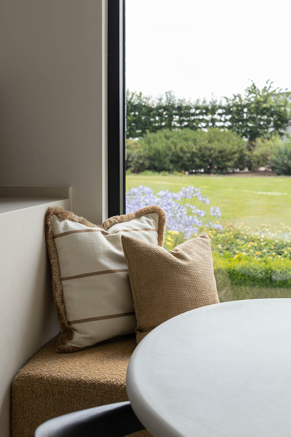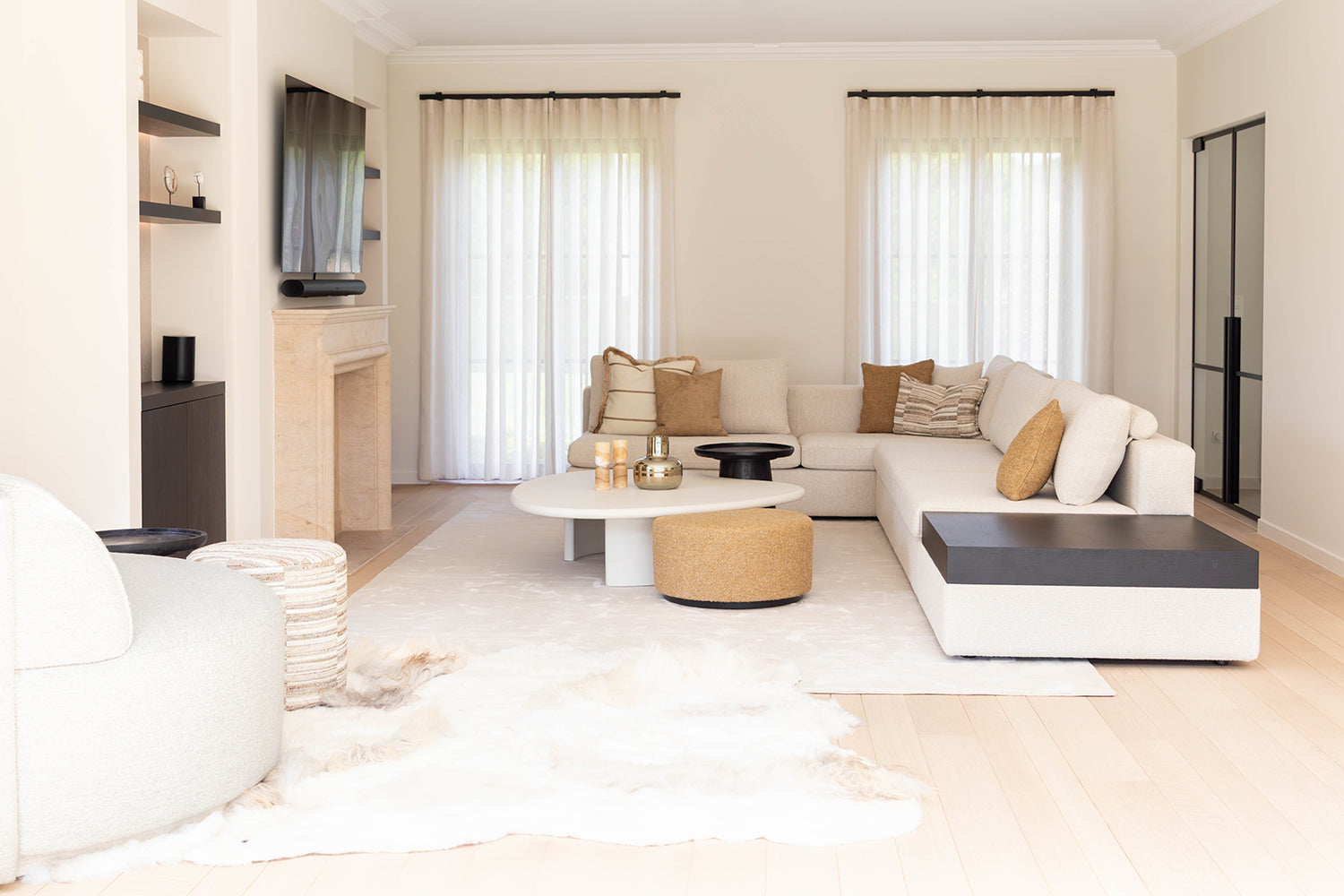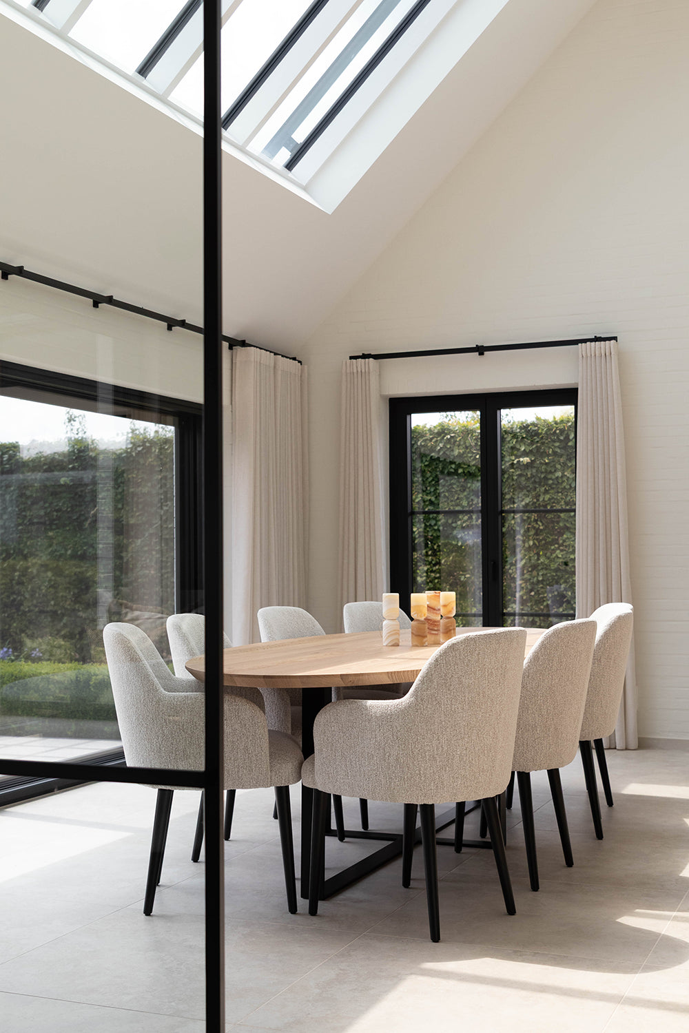 In dit prachtige renovatieproject komt het beste van twee werelden samen. De charme van de oorspronkelijke woning is behouden dankzij het respect voor de klassieke elementen. Deze tijdloze kenmerken zijn harmonieus aangevuld met moderne ingrepen die het interieur fris en hedendaags maken. Een doordachte bijbouw zorgt niet alleen voor extra ruimte, maar brengt ook een overvloed aan natuurlijk licht binnen, wat de volledige leefruimte open en luchtig maakt. De overgang tussen oud en nieuw voelt vanzelfsprekend aan door het verfijnde samenspel van kleuren en materialen. Er is gewerkt met warme, natuurlijke tinten, zachte texturen en elegante contrasten die elkaar versterken. Elk hoekje van de woning vertelt zijn eigen verhaal – van subtiele details tot verrassende accenten – waardoor de ruimte blijft verrassen. Een renovatie waar karakter en vernieuwing perfect in balans zijn.