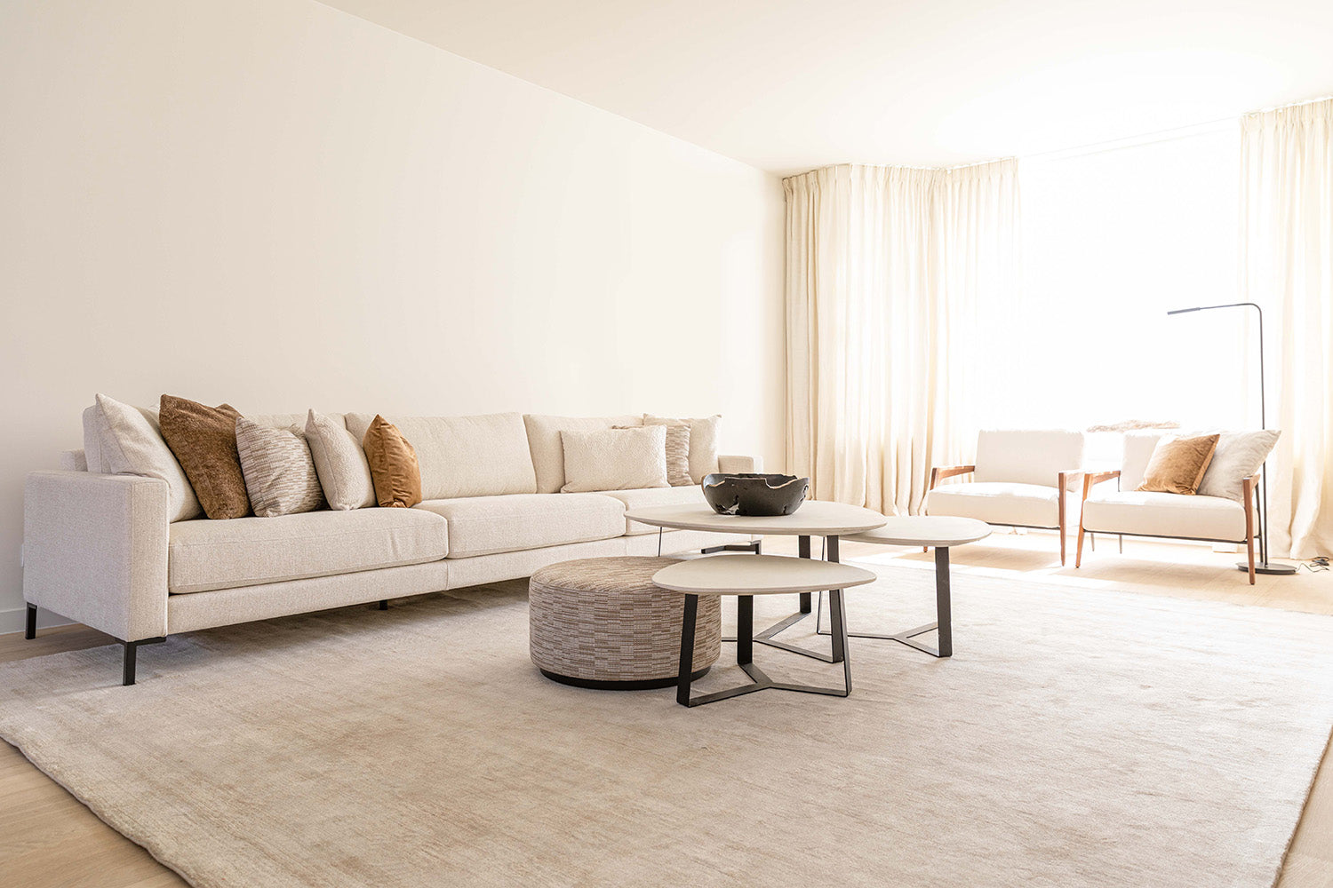 Het creëren van een interieur dat zowel uitnodigend als fris aanvoelt, is een kunst op zich. Voor een tweede verblijf in Knokke is gekozen voor een totaal nieuwe inrichting die deze essentie belichaamt. De klant wenste een interieur dat licht en luchtig is, wat gerealiseerd is door het gebruik van lichte stoffen en meubels die op verfijnde pootjes staan. Dit geeft een gevoel van ruimte en elegantie. Notelaar meubels zoals de tv cabinet bridge voegen een warme toets toe, terwijl de mortex salontafels Zina een moderne en gestroomlijnde look bieden. Het resultaat is een harmonieuze balans tussen comfort en hedendaagse esthetiek, perfect voor een ontspannen ontsnapping aan de dagelijkse drukte.