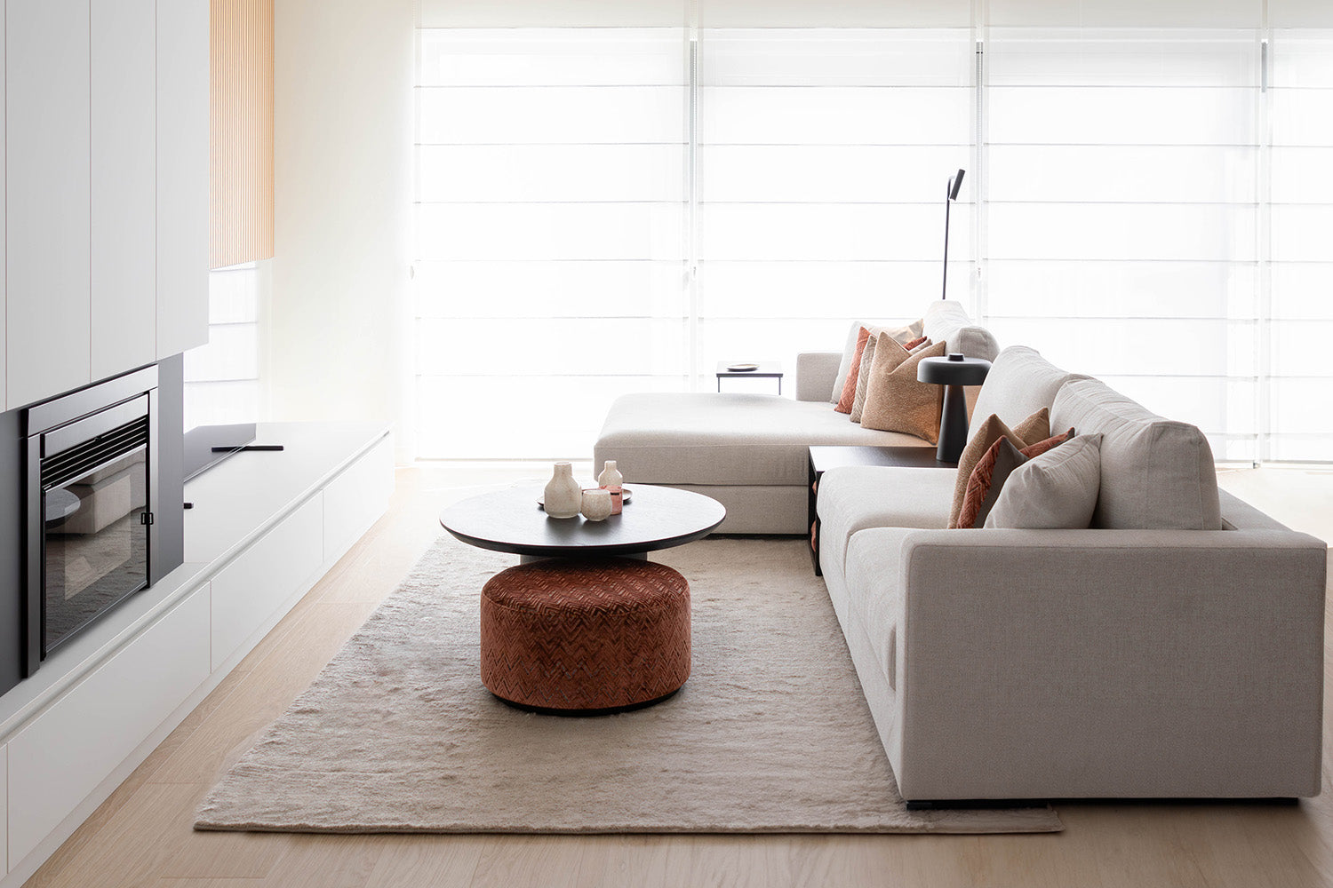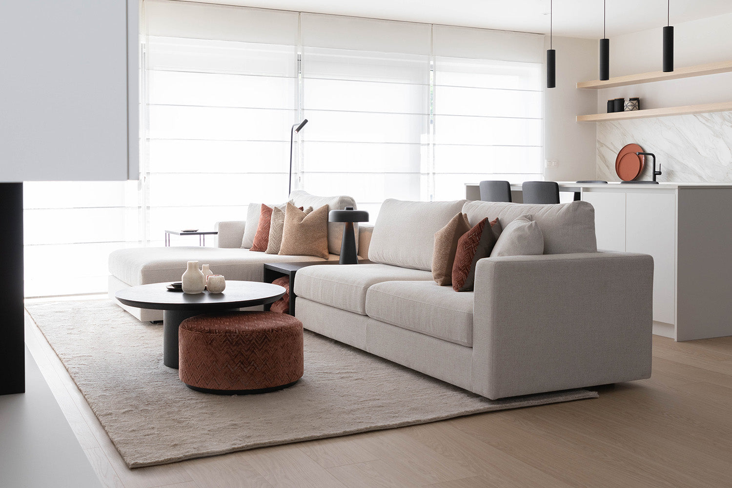 De woning is recentelijk gerenoveerd en biedt daardoor een harmonieuze samensmelting van leefruimte, keuken en eetkamer. De vloeiende overgang tussen deze ruimtes creëert een open en uitnodigende sfeer. Het vakmanschap dat tot uiting komt in het maatwerk van de inbouwkasten en het haardmeubel, verleent de ruimte een gevoel van elegantie. De keramische eettafel Granvelle is niet alleen praktisch, maar vormt ook een esthetische aanvulling op de keuken. Na een lange dag biedt de comfortabele sofa Citizen de perfecte plek om te ontspannen en te genieten van de huiselijke warmte.