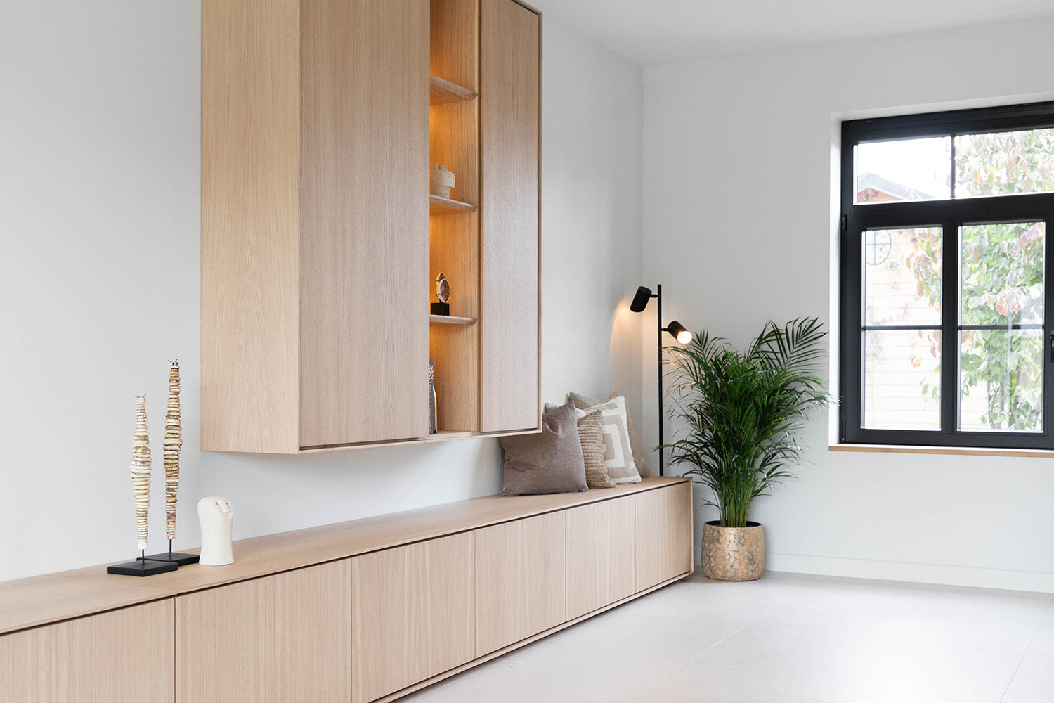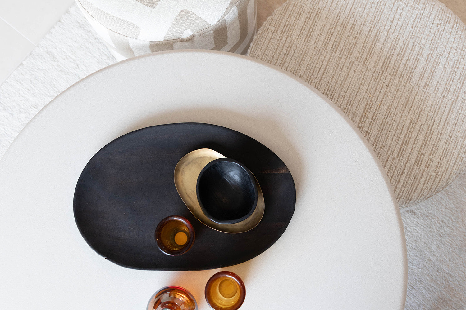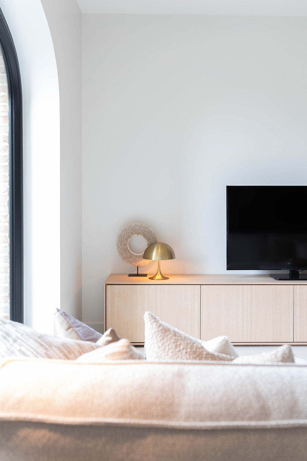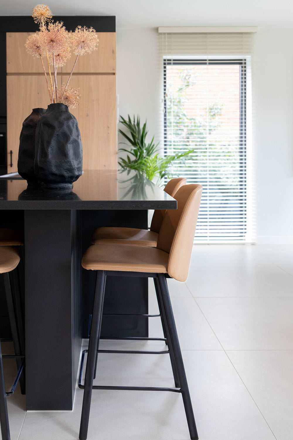 Het concept van 'slow living' in interieurdesign benadrukt een rustige en doordachte levensstijl, waarbij elk element zorgvuldig wordt gekozen om harmonie en rust te bevorderen. Een warm kleurenpalet met ton-sur-ton kleuren draagt bij aan een gezellige en uitnodigende sfeer. De keuze voor de sofa Abby op pootjes draagt bij aan een gevoel van ruimtelijkheid en luchtigheid, terwijl een keramische eettafel Madrid met een organische vorm de natuurlijke schoonheid van het materiaal benadrukt. Het toevoegen van planten in elke hoek van de ruimte brengt leven en frisheid, wat de filosofie van slow living verder onderstreept: het waarderen van de eenvoud en het vinden van schoonheid in het alledaagse.