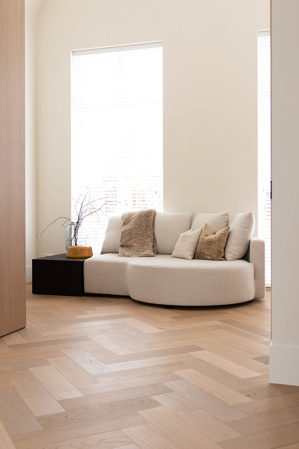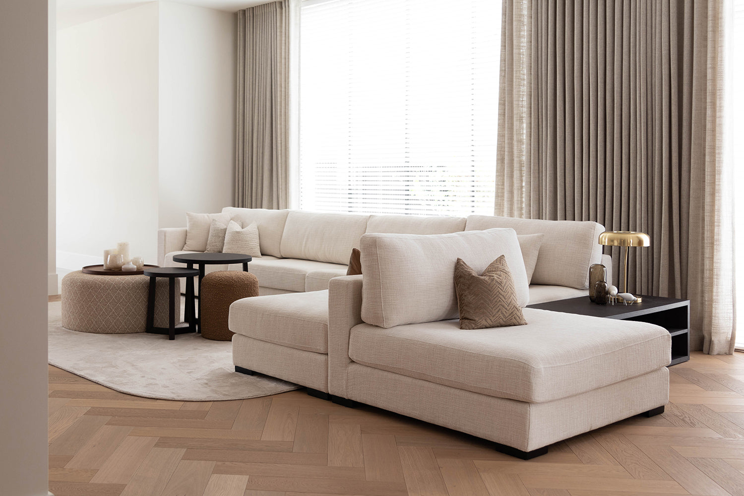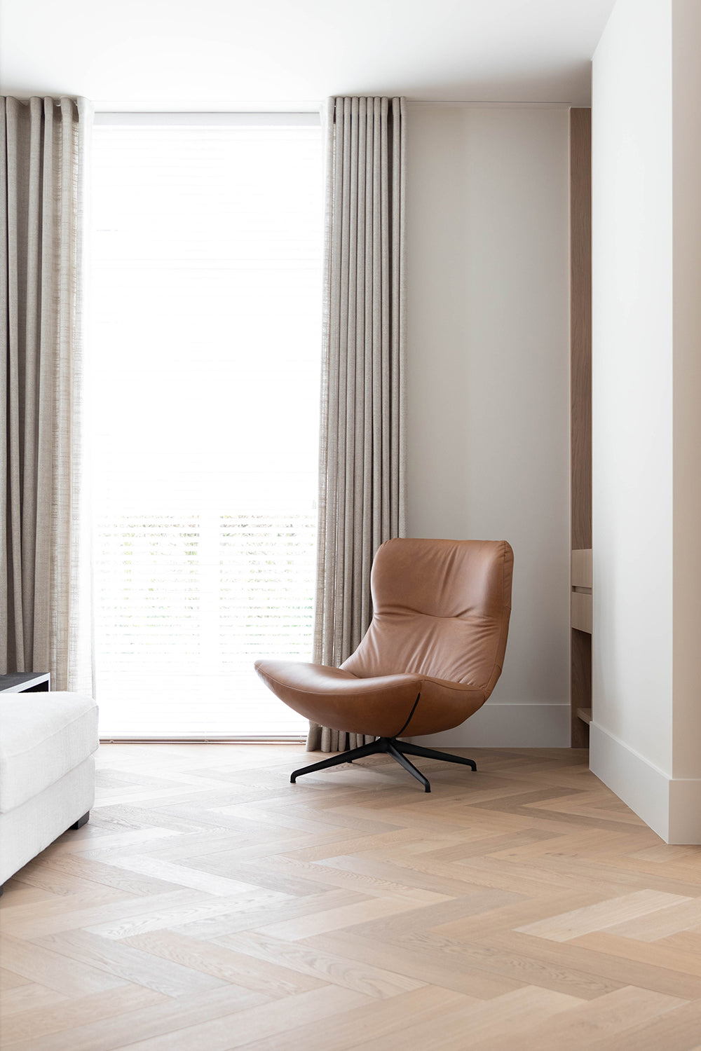 Een prachtig huis met hoge plafonds biedt een unieke kans om een interieur te creëren dat zowel groots als uitnodigend is. De sleutel tot het bereiken van een gezellige sfeer ligt in de selectie van meubels die de ruimte complementeren zonder deze te overweldigen. Door te kiezen voor stukken die de visuele ruimte respecteren, kan men een gevoel van openheid behouden terwijl de kamer toch warm en uitnodigend aanvoelt. Het gebruik van zorgvuldig gekozen kleuren en materialen die door de verschillende ruimtes heen consistent zijn, draagt bij aan een harmonieuze flow. De afwisseling tussen ronde en rechte vormen voegt een dynamisch element toe, waarbij de ronde vormen een zachte, speelse touch geven die de strakke lijnen van de rechte vormen verzachten. Dit zorgt voor een evenwichtige en aantrekkelijke esthetiek die zowel modern als tijdloos is. Het resultaat is een interieur dat de architecturale schoonheid van het huis versterkt en een omgeving creëert die zowel esthetisch als functioneel is.