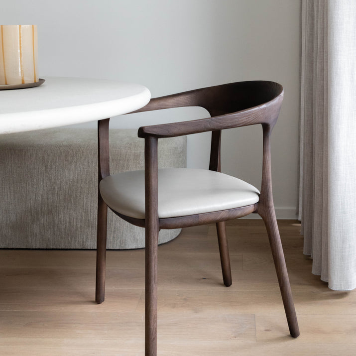 Armchair Assisi is een meesterwerk van tijdloze elegantie en klasse. Met een veelvoud aan afwerkingen en de mogelijkheid tot personalisatie in verschillende kleuren, past deze stoel perfect bij elke stijl en voorkeur. Zijn gestroomlijnde ontwerp straalt een moderne trend uit, waardoor het niet alleen functioneel is maar ook een statement maakt in elke ruimte. De verfijnde vormgeving van het hout geeft een gevoel van luxe, terwijl het naadloos combineert met het moderne materialen zoals Mortex. Deze stoel belichaamt de perfecte balans tussen tijdloze klasse en eigentijdse flair, waardoor het een onmisbare toevoeging is aan elke stijlvolle leefruimte. De armstoel Assisi is online verkrijgbaar in 5 kleuren van de vlekwerende Aquaclean stof Camila, zwart leder en verschillende houtskleuren voor een persoonlijk tintje. Voor andere stoffen kan je terecht in onze Concept Store.