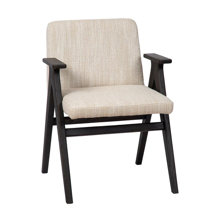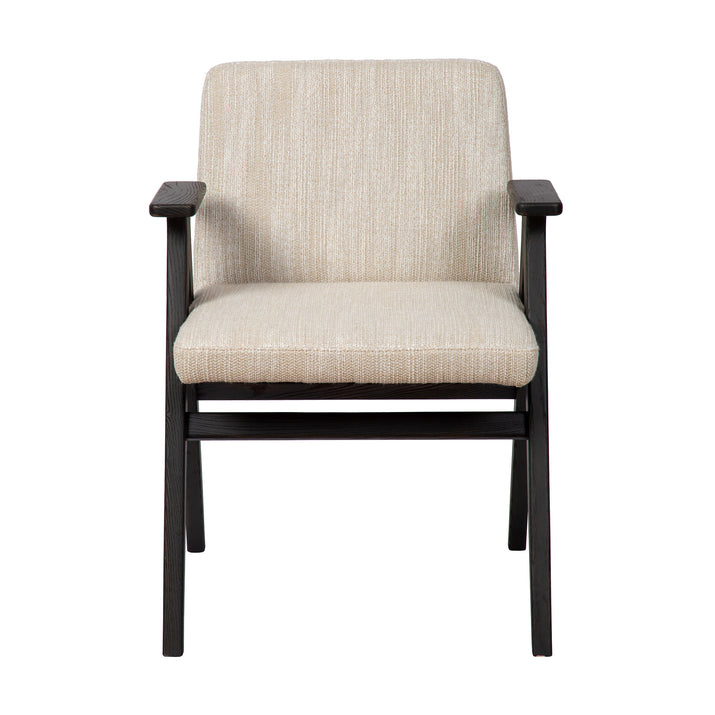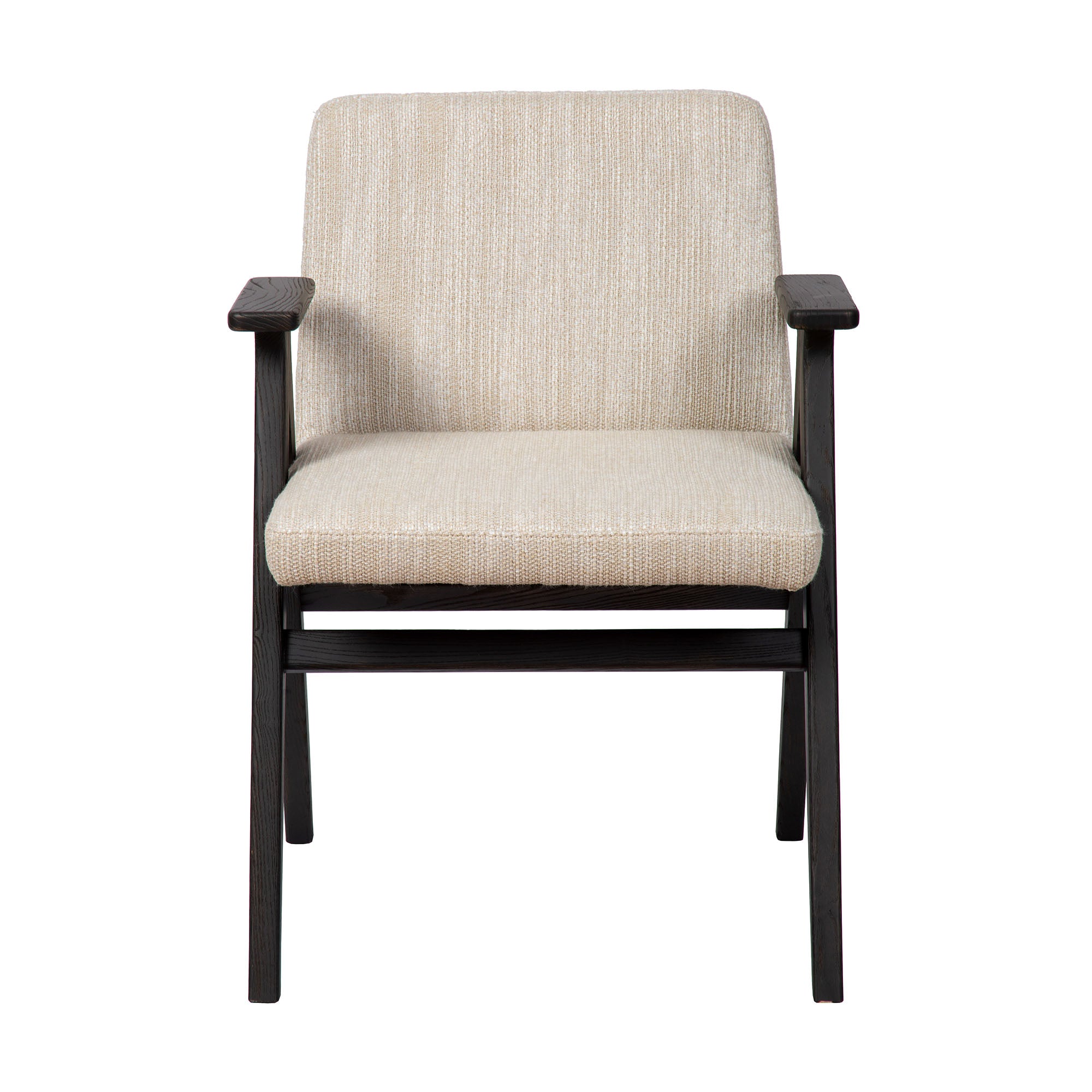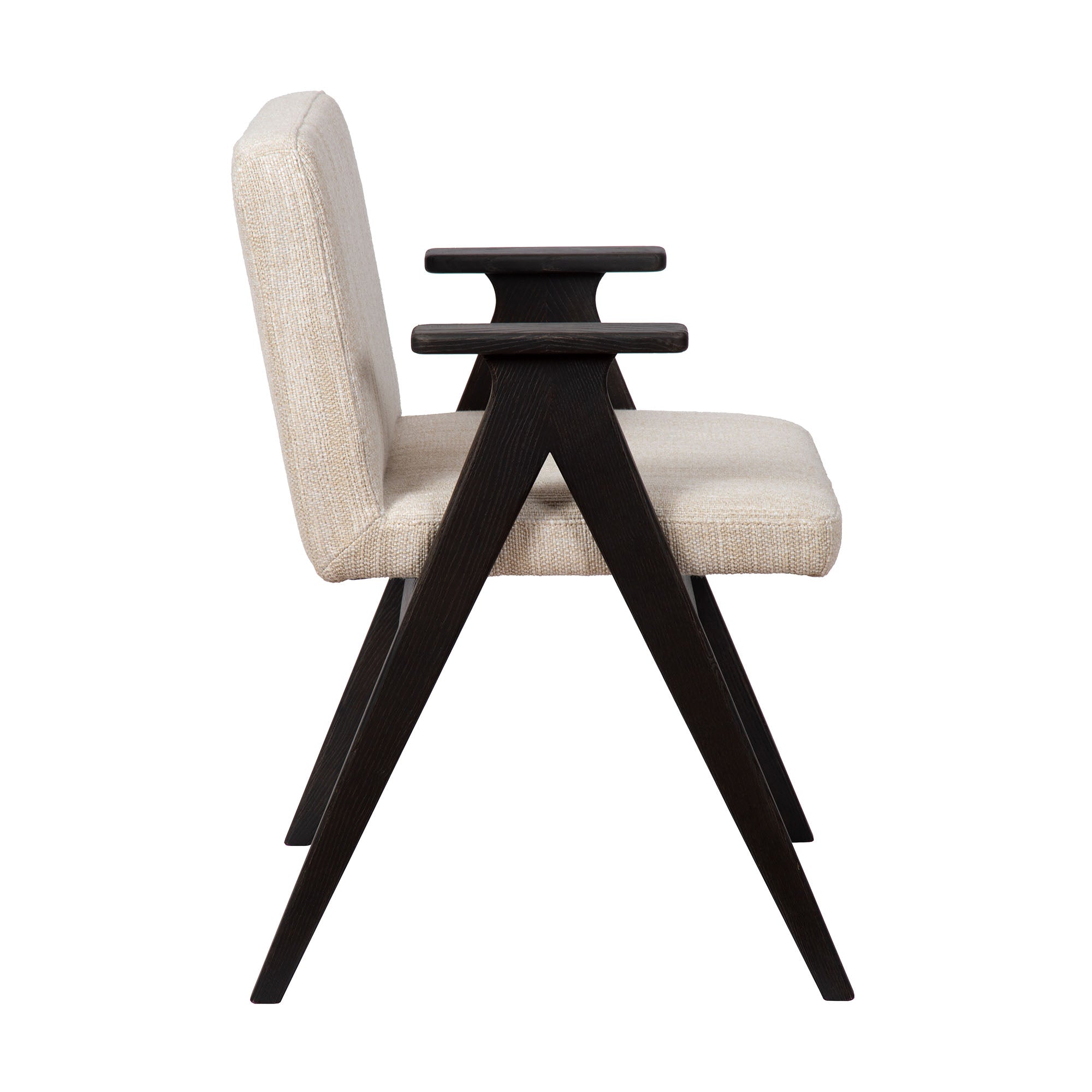 De Nero armstoel, met haar strakke houten frame en rechte armleuningen, straalt een moderne en tijdloze eenvoud uit. Het comfortabele zit- en rugkussen in stof biedt een uitnodigende en zachte zitervaring, terwijl het stevige houten frame voor een solide en stijlvolle basis zorgt. Dankzij het minimalistische ontwerp past de Nero moeiteloos in verschillende interieurstijlen, van Scandinavisch modern tot warm en eigentijds. Deze armstoel combineert functionaliteit en comfort op een elegante manier, waardoor hij perfect is voor zowel dagelijkse diners als ontspannen momenten aan tafel. Armstoel Nero is online verkrijgbaar in 5 kleuren van de vlekwerende Aquaclean stof Camila. Voor andere stoffen of maatwerk kan je terecht in onze Concept Store.