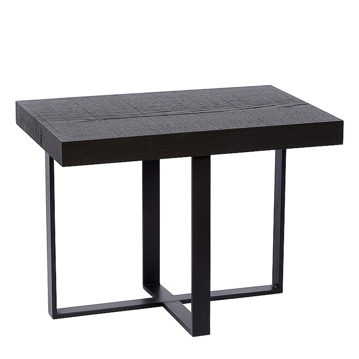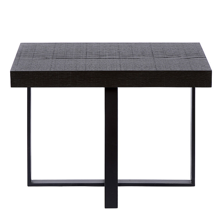Ben je op zoek naar een bijzettafel die zowel stijlvol als praktisch is? Dan is de Trix bijzettafel iets voor jou. Deze tafel heeft een eikenfineer tafelblad met een mooie houtnerf en een zwart metalen kruispoot die voor een stoer contrast zorgt. Het tafelblad is robuust en dik, maar de kopse kant is plat, waardoor de tafel een strakke uitstraling heeft. De poten zijn fijn en elegant, maar ook stevig en stabiel. De Trix bijzettafel past in elk interieur en is ideaal om je drankje, boek of plant op te zetten. Voor meer opties en afmetingen kan je in onze Concept Store terecht.
