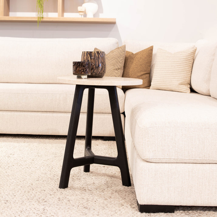 De bijzettafel Uma is een prachtig voorbeeld van puur vakmanschap. Het Travertijne tafelblad heeft een natuurlijke uitstraling en een warme kleur. De houten afgeronde tafelpoot - die gelijken op de drie poten van een tripod - geeft de tafel een elegante en moderne look. De bijzettafel Uma heeft een luchtig karakter en past in elk interieur. Bovendien kunt u kiezen uit verschillende afmetingen om de perfecte bijzettafel voor uw woonkamer te vinden. Wenst u liever een marmer look heeft u ook de mogelijkheid hier te kiezen uit verschillende kleuren.