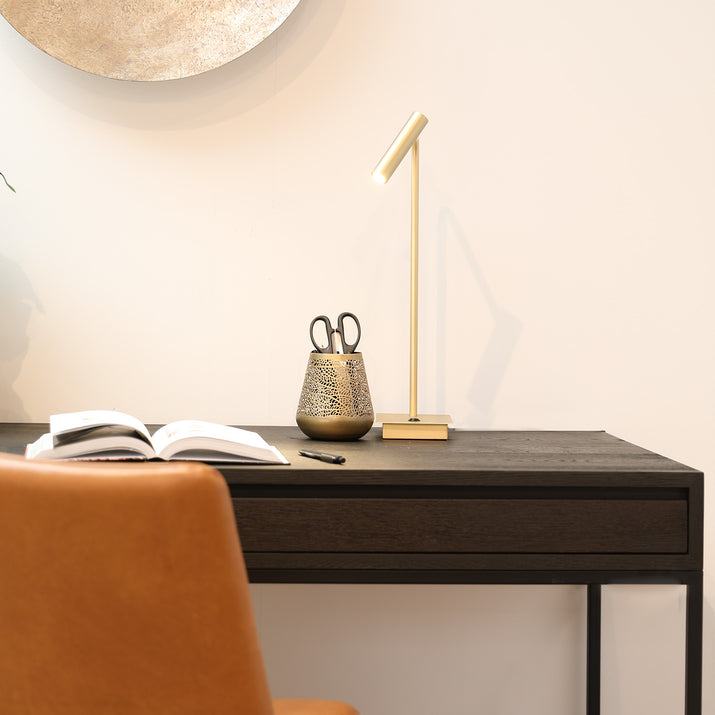 Bureau Ferrum combineert functionaliteit met een strak design, ideaal voor een moderne werkplek. Het stevige metalen onderstel en de twee schuiflades met 'push to open'-systeem zorgen voor een naadloze en gebruiksvriendelijke ervaring. De mogelijkheid om afmetingen en houtkleuren aan te passen, betekent dat elk bureau uniek kan worden afgestemd op de persoonlijke stijl en behoeften van de gebruiker. Ferrum biedt een oplossing die zowel praktisch als esthetisch aantrekkelijk is. Er zijn verschillende kleuren en maten mogelijk. Voor maatwerk of meer informatie kan u terecht in onze Concept Store.