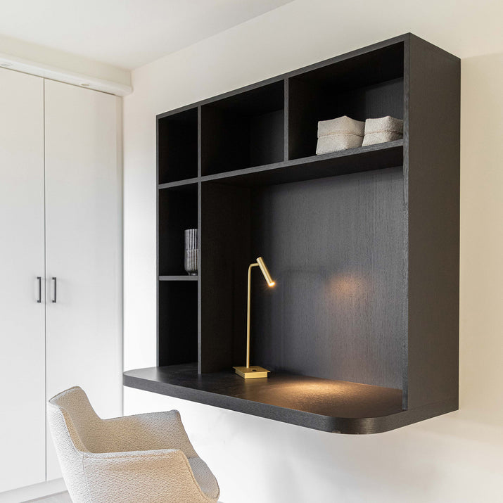De Bureau Gobi is een stijlvolle en functionele keuze voor wie op zoek is naar een hangend bureau met een modern design. Het afgeronde blad zorgt voor een zachte uitstraling en comfort tijdens het werken, terwijl de open leggers ideaal zijn voor het opbergen van boeken en andere benodigdheden. De mogelijkheid om het bureau op maat te laten maken en in verschillende houtkleuren te kiezen, biedt een persoonlijke touch die past bij elke interieurstijl. Bovendien kan een hangend bureau zoals de Gobi een ruimtebesparende oplossing zijn, perfect voor kleinere woonruimtes of gezellige werkhoeken. Voor meer informatie kan je terecht in onze Concept Store