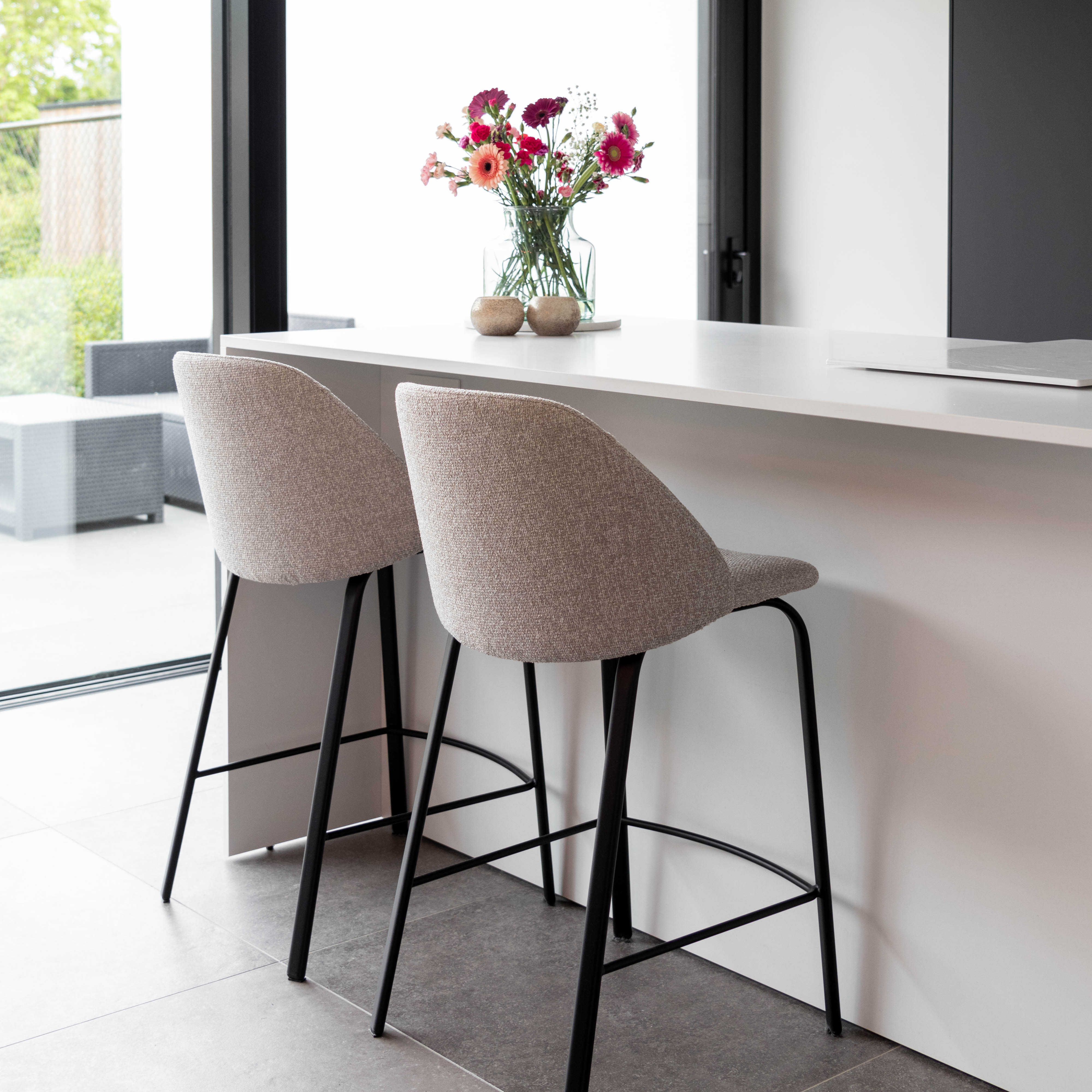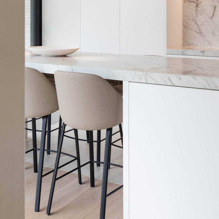 De Counterstoel Sofia is een lichte kuipstoel die uitblinkt in comfort en stijl. Met een bredere zitting dan de meeste counterstoelen biedt de Sofia uitstekende ondersteuning, ideaal voor lange zitperiodes. De mooi afgewerkte rugleuning voegt een vleugje elegantie toe, terwijl het zwarte onderstel zorgt voor een moderne uitstraling. Voor een persoonlijke touch kun je in onze Concept Store kiezen uit verschillende zittingen en pootkleuren. De Counterstoel Sofia is de perfecte combinatie van functionaliteit en esthetiek, en een prachtige aanvulling op elke keuken- of baromgeving. Deze counterstoel is online verkrijgbaar in 5 kleuren van de vlekwerende Aquaclean stof Camila. Voor andere stoffen kan je terecht in onze Concept Store.