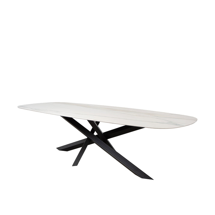 De keramische eettafel Barca combineert esthetiek met functionaliteit. Het bootvormige ontwerp en de afgeronde vormen geven het een moderne uitstraling, terwijl het dikke keramische blad van 1,2 cm zorgt voor duurzaamheid. De afwerking is van hoge kwaliteit en het metalen zwarte onderstel biedt niet alleen stabiliteit maar is ook zo ontworpen dat het niemand stoort tijdens het gebruik. Dit type tafel is een uitstekende keuze voor wie op zoek is naar een stijlvolle en praktische toevoeging aan hun interieur. Voor andere kleuren en onderstellen kan je best langskomen in onze Concept Store.
