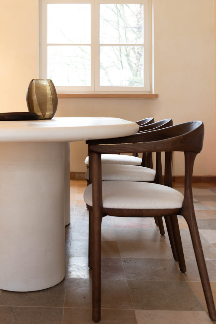 Hou je ervan de laatste trends te volgen? Dan is de eettafel Octa iets voor u. Deze tafel heeft een Deens ovalen tafelblad dat gemaakt is van mortex, een populaire trend in interieurdesign. Mortex is een onderhoudsvriendelijk materiaal dat krasvast en waterdicht is. Het geeft jouw tafel een natuurlijke look met een zachte glans. De afgeronde zijkanten van het tafelblad zorgen voor een elegante uitstraling. De eettafel Octa rust op twee ronde tafelpoten die stevig en stabiel zijn. Je kan kiezen uit verschillende kleuren en afmetingen om de tafel aan te passen aan jouw woonstijl. De eettafel Octa is een echte blikvanger in jouw eetkamer of keuken. Voor maatwerk kan u terecht in onze Concept Store.
