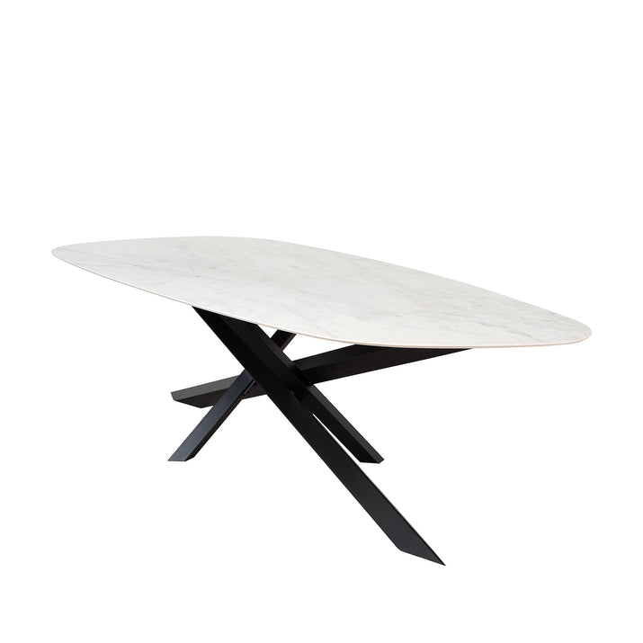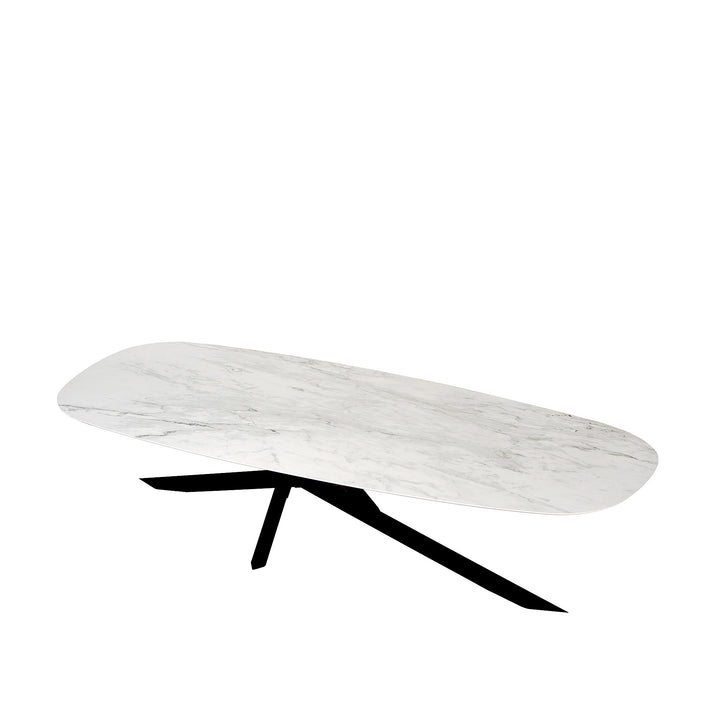 De keramische eettafel Palmas combineert functionaliteit met esthetiek, met een langwerpig steenvormig ontwerp en afgeronde contouren. Het 1,2 cm dikke keramische blad staat bekend om zijn duurzaamheid en elegante afwerking, terwijl het metalen zwarte onderstel zorgt voor een moderne uitstraling. Het ontwerp van de tafelpoot garandeert dat deze niemand hindert tijdens het gebruik, maar toch een perfecte stabiliteit biedt. Dit maakt de Palmas eettafel een ideale keuze voor moderne interieurs. Voor andere kleuren keramiek en andere onderstellen kan je best terecht in onze Concept Store.