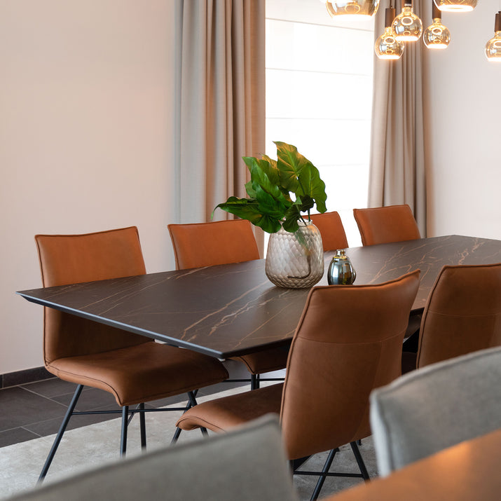 Eettafel Real is de perfecte eettafel voor wie stijl en duurzaamheid zoekt. Het keramische blad is kras- en vlekbestendig en kan tegen hitte. Deze trendy tafel heeft een stalen onderstel voor extra stevigheid en stabiliteit. Met meerdere kleuren voor het keramische blad, past hij in elk interieur, of je nu houdt van een opvallend statement of neutrale afwerking. Ideaal voor gezellige diners en lange avonden met vrienden en familie. Eettafel Real combineert functionaliteit met een tijdloos design, en voegt een vleugje klasse toe aan elke eetkamer. Ontdek zelf de veelzijdigheid van Eettafel Real in onze toonzaal.