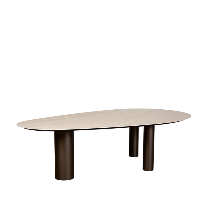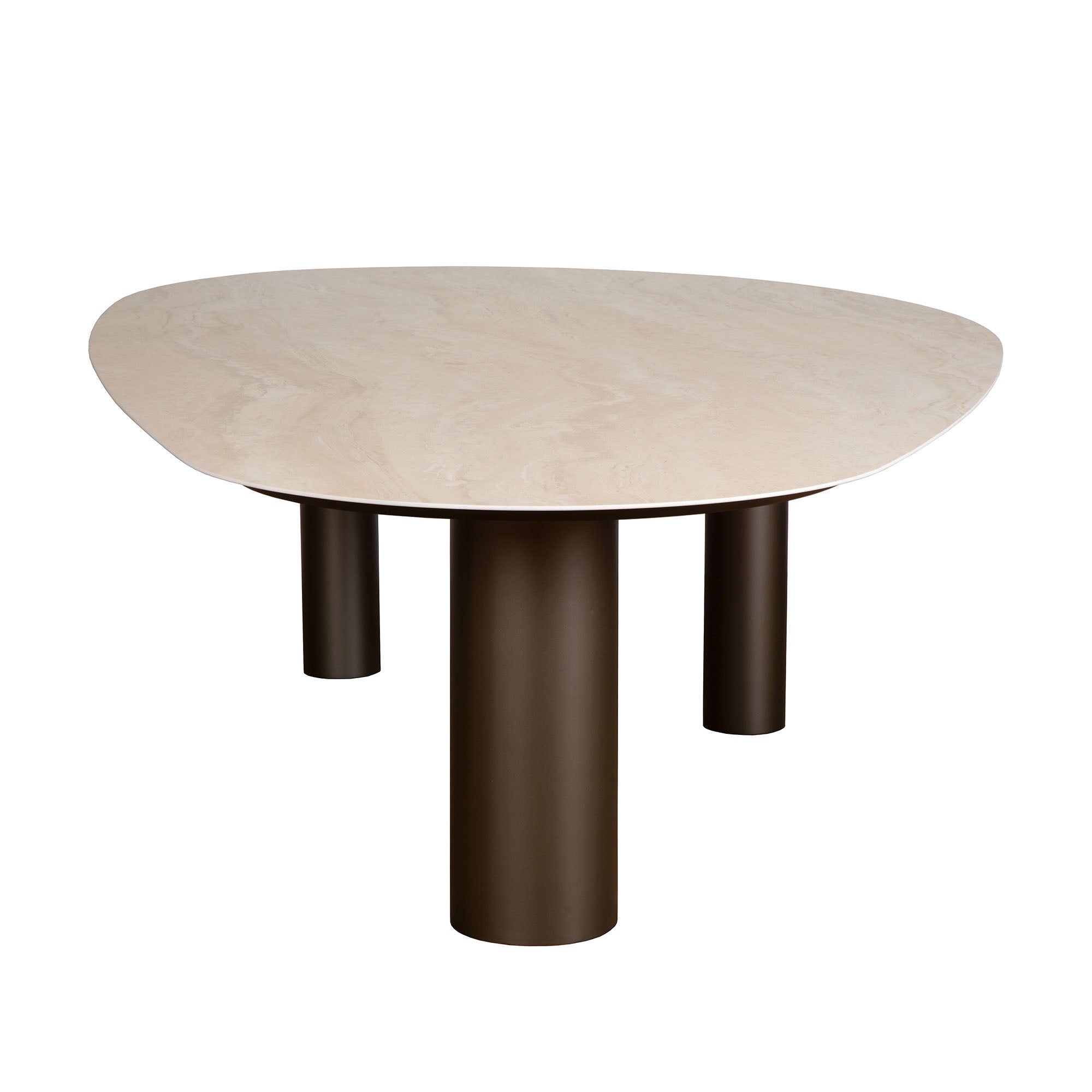 De Byblos tafel, met haar organisch gevormde ceramische blad, combineert vloeiende lijnen met modern vakmanschap. Het duurzame ceramische oppervlak biedt zowel robuustheid als een luxueuze uitstraling, ideaal voor dagelijks gebruik of stijlvolle diners. Dankzij de zachte, organische contouren oogt de tafel licht en elegant, terwijl het minimalistische ontwerp moeiteloos in uiteenlopende interieurstijlen past. De Byblos tafel is een perfecte mix van esthetiek en functionaliteit, en vormt een natuurlijke, elegante blikvanger in elke eetruimte.