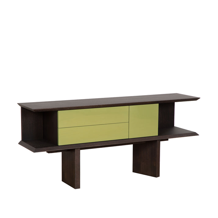 De wandtafel Alvero combineert warme houttinten met een strakke lakafwerking, waardoor een eigentijds en stijlvol meubel ontstaat dat zowel praktisch als decoratief is. Het hout geeft de tafel een natuurlijke uitstraling, terwijl de hoogglans lakaccenten zorgen voor een verfijnde, moderne touch. Dankzij het compacte en slanke ontwerp is Alvero perfect voor gebruik in de hal, woonkamer of eetruimte, waarbij het extra opbergruimte of een stijlvolle presentatieplek voor decoratie biedt. De harmonieuze mix van materialen maakt deze wandtafel tot een veelzijdig designstuk dat sfeer en functionaliteit moeiteloos samenbrengt.