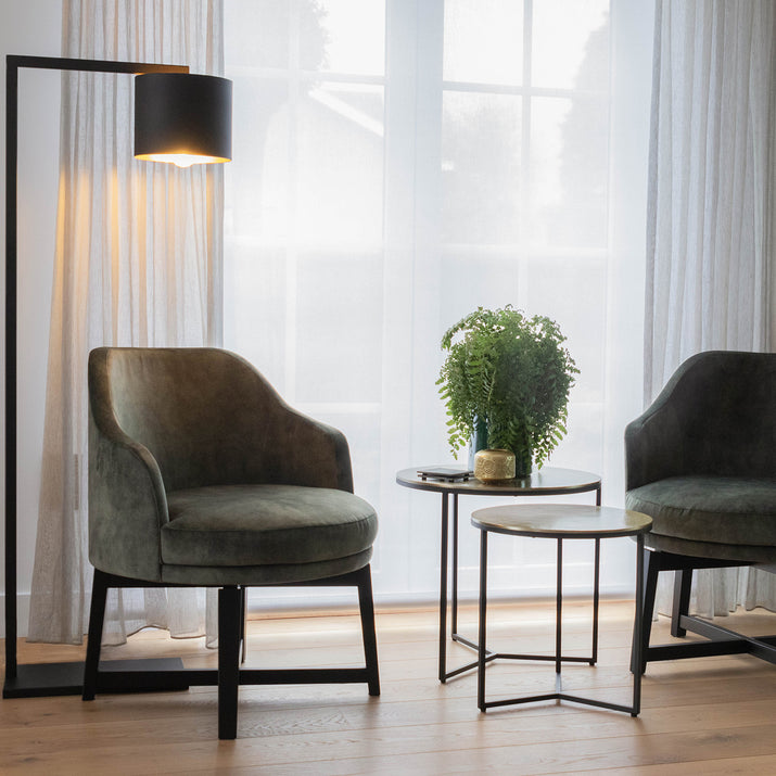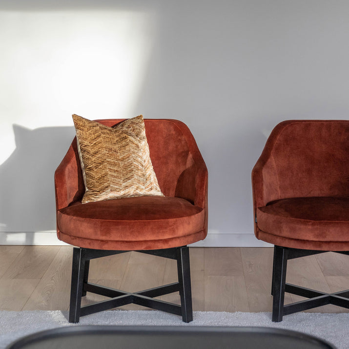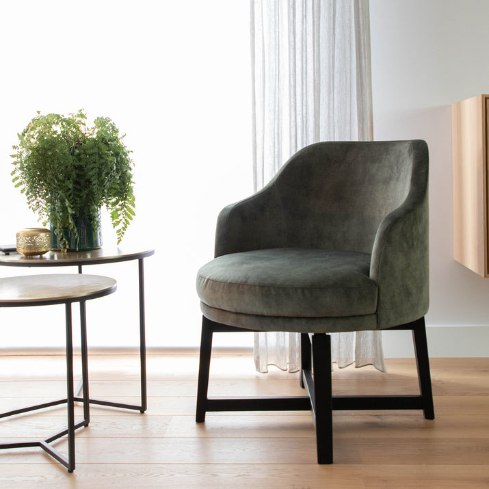 De Fauteuil Glory is een stijlvolle en comfortabele stoel die niet alleen dient als een opvallend middelpunt in elke kamer, maar ook uitzonderlijk goed past bij lage eettafels. Het draaibare houten onderstel voegt een unieke esthetiek toe en biedt gemak, waardoor het een ideale keuze is voor wie op zoek is naar zowel functionaliteit als een warme, uitnodigende sfeer in hun interieur. Met de mogelijkheid om te kiezen uit verschillende stoffen kan de Fauteuil Glory volledig worden aangepast aan persoonlijke voorkeuren en interieurstijlen. De Fauteuil Glory is online verkrijgbaar in 5 kleuren van de vlekwerende Aquaclean stof Camila. Voor andere stoffen of maatwerk kan je terecht in onze Concept Store.