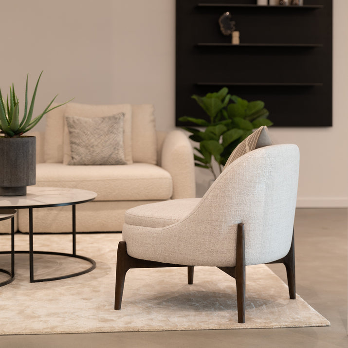 De Fauteuil Montreal combineert comfort met een compact en elegant design, ideaal voor wie op zoek is naar een stijlvolle toevoeging aan het interieur. Het fijne zitje en de aandacht voor detail, zoals het houten pootje dat sierlijk over de rug loopt, maken deze fauteuil tot een uniek meubelstuk. Of het nu gaat om een klassieke of moderne inrichting, de Fauteuil Montreal past zich moeiteloos aan en biedt een comfortabele zitervaring met een luxe uitstraling. De Fauteuil Montreal is online verkrijgbaar in 5 kleuren van de vlekwerende Aquaclean stof Camila en verschillende houtkleuren. Voor andere stoffen of kan je terecht in onze Concept Store.