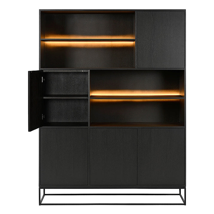 De strakke moderne cabinet Flinn Bar straalt een tijdloze elegantie uit, met een minimalistisch ontwerp dat de ruimte verrijkt. Het achtergrondlicht werpt een subtiele gloed op de inhoud van de leggers, waardoor de kast zowel functioneel als esthetisch aantrekkelijk is. Met zijn push-to-open deuren biedt dit model een naadloze ervaring van gebruiksgemak en stijlvolle eenvoud. Het metalen onderstel voegt een industriële flair toe en zorgt tegelijkertijd voor stabiliteit en duurzaamheid. Deze kast staat voor de perfecte balans tussen moderniteit en functionaliteit, waardoor het een onmisbaar pronkstuk wordt in elke eigentijdse ruimte. Voor maatwerk of andere indelingen kan je altijd terecht in onze Concept Store.