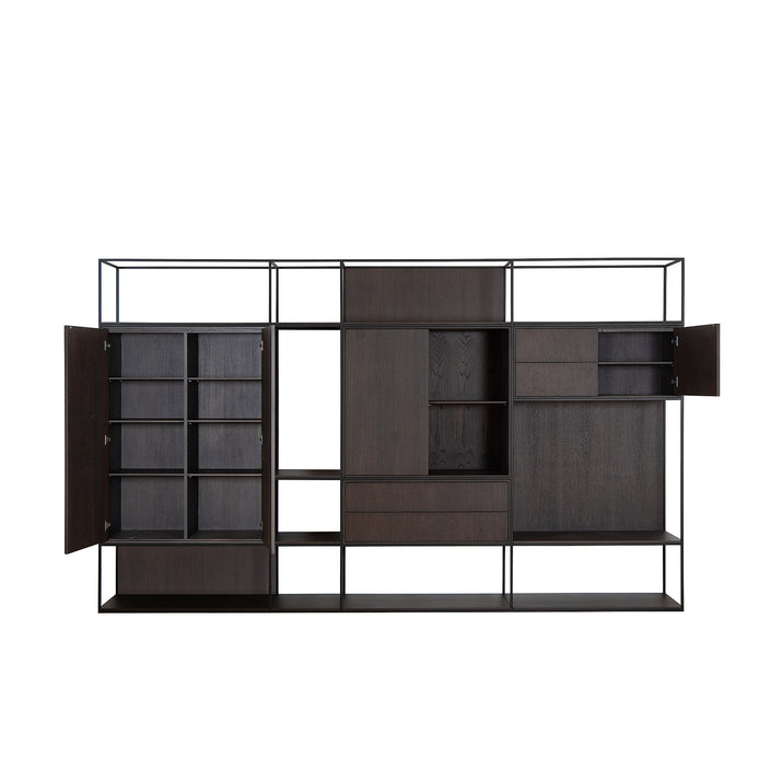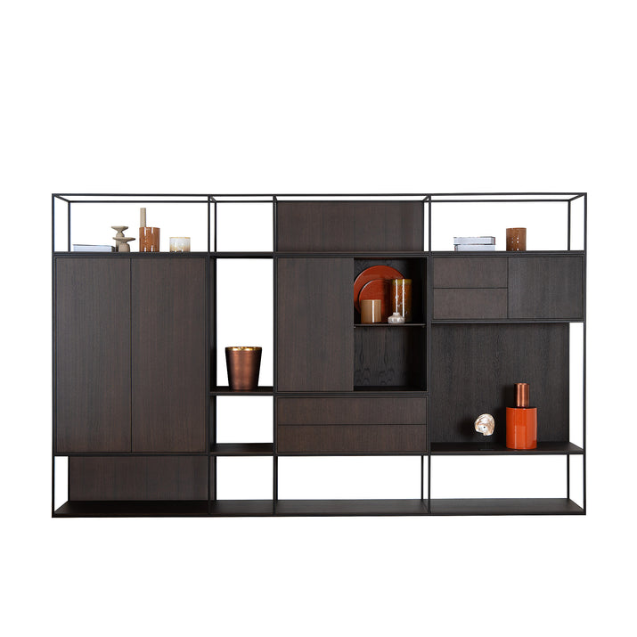 Cabinet Plaza kan gezien worden als een eigentijds wandrek dat een harmonieuze fusie brengt van functionaliteit en stijl. Met een gestroomlijnd ontwerp combineert het moeiteloos gesloten en open compartimenten, waardoor het perfect is voor zowel het tentoonstellen van decoratie als het opbergen van alledaagse benodigdheden. Vervaardigd uit een evenwichtige mix van hout en metaal, straalt het rek een tijdloze moderniteit uit die elke ruimte verrijkt. De flexibiliteit van maatwerk biedt de mogelijkheid om het aan te passen aan de unieke specificaties van elke kamer, terwijl verschillende houtkleuren een persoonlijk tintje toevoegen aan het geheel. Voor meer afwerkingen en maatwerk kan je terecht in onze Concept Store.