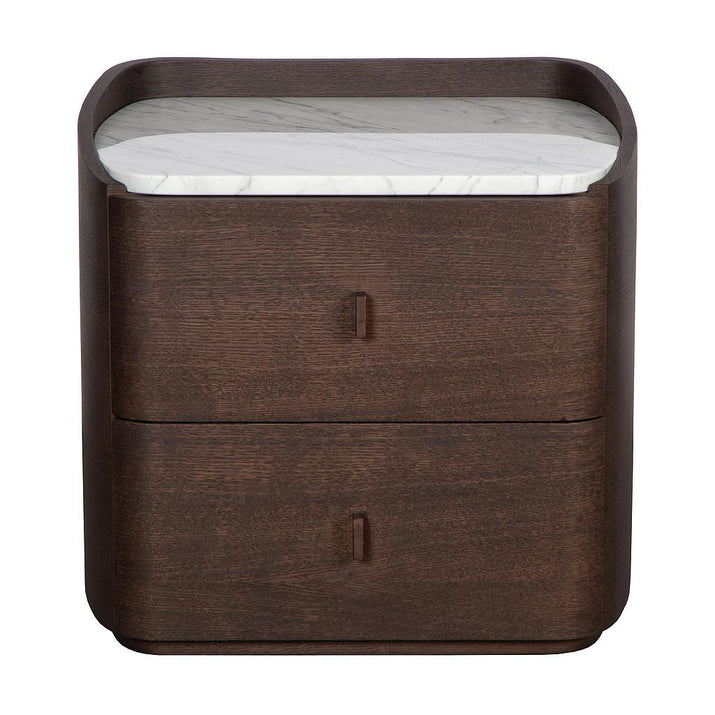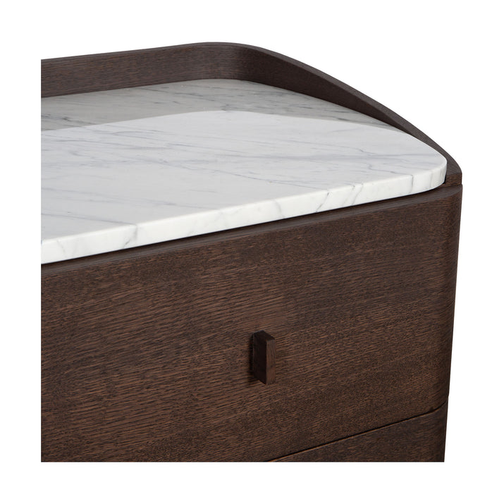 Nachttafel Roan combineert elegantie en functionaliteit in een verfijnd ontwerp. Het bovenblad in marmer voegt een luxueuze toets toe met de uitstraling van natuursteen, terwijl het houten kastje met twee schuiven zorgt voor praktische opbergruimte naast het bed. De strakke lijnen en evenwichtige verhoudingen maken Roan geschikt voor zowel moderne als tijdloze slaapkamers. Zowel het marmer blad als het houtwerk zijn verkrijgbaar in verschillende kleuren, zodat je de nachttafel perfect kan afstemmen op jouw interieur. Een stijlvolle en doordachte keuze die comfort en klasse samenbrengt.