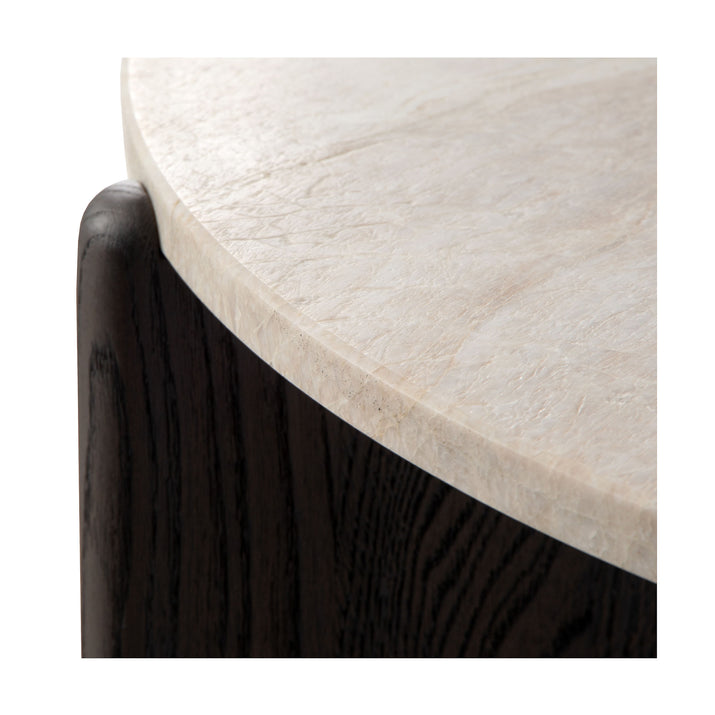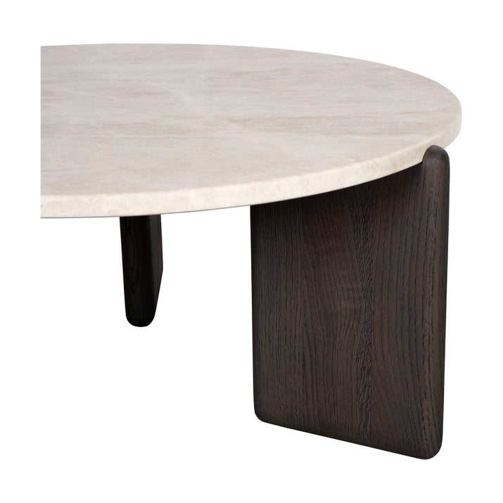 Salontafel James met marmer blad straalt tijdloze klasse uit door de harmonieuze combinatie van natuurlijke materialen en verfijnde vormgeving. De houten poten zorgen voor een warm en evenwichtig contrast, en geven het geheel een solide en elegante basis. Dankzij het compacte formaat en de zachte lijnen past James moeiteloos in diverse interieurs, van modern tot klassiek. Een ideale salontafel voor wie houdt van subtiele luxe en natuurlijke materialen in perfecte balans.
