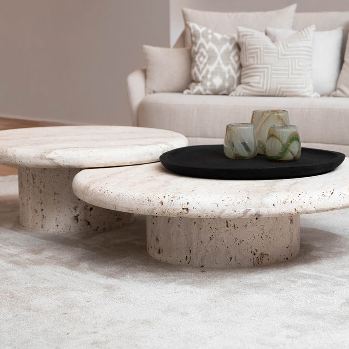 De Salontafel Nomad combineert een luxueuze uitstraling met een eigentijds ontwerp. Het dikke travertijn blad met zijn afgeronde randen rust op een stevige centrale poot, wat de tafel een rustieke, maar verfijnde look geeft. Dit meubelstuk is niet alleen een praktische toevoeging aan elke woonruimte, maar ook een statement van stijl en elegantie. Met zijn robuuste materialen en tijdloze design, is de Nomad salontafel een duurzame keuze voor wie houdt van kwaliteit en esthetiek. Voor meer informatie kan je deze bekijken in onze Concept Store.