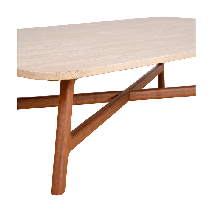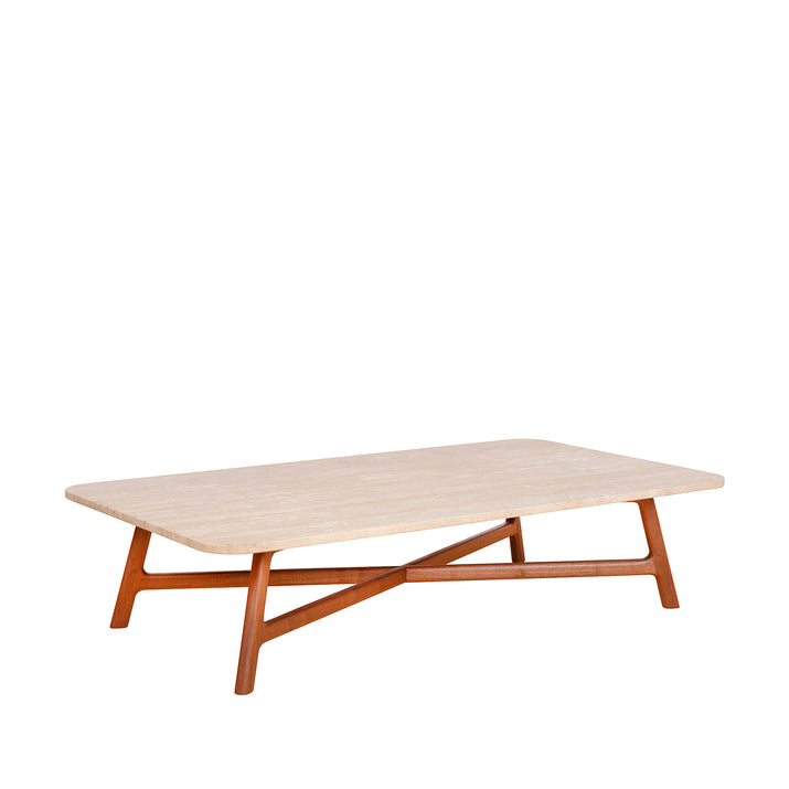 De salontafel Uma is een prachtig voorbeeld van puur vakmanschap. Het Travertijne bovenblad heeft een natuurlijke uitstraling en een warme kleur. De houten afgeronde tafelpoot - die gelijken op de drie poten van een tripoti - geeft de tafel een elegante en moderne look. De salontafel Uma heeft een luchtig karakter en past in elk interieur. Bovendien kunt u kiezen uit verschillende afmetingen om de perfecte salontafel voor jouw woonkamer te vinden. Voor meer afwerkingen en maatwerk kan je terecht in onze Concept Store.