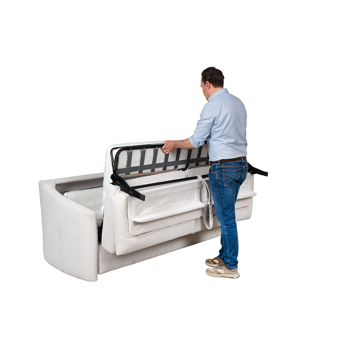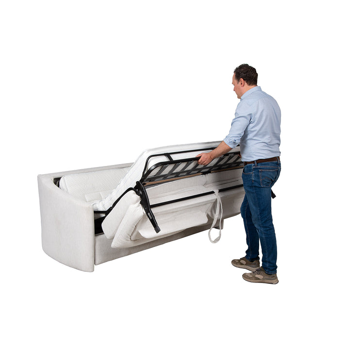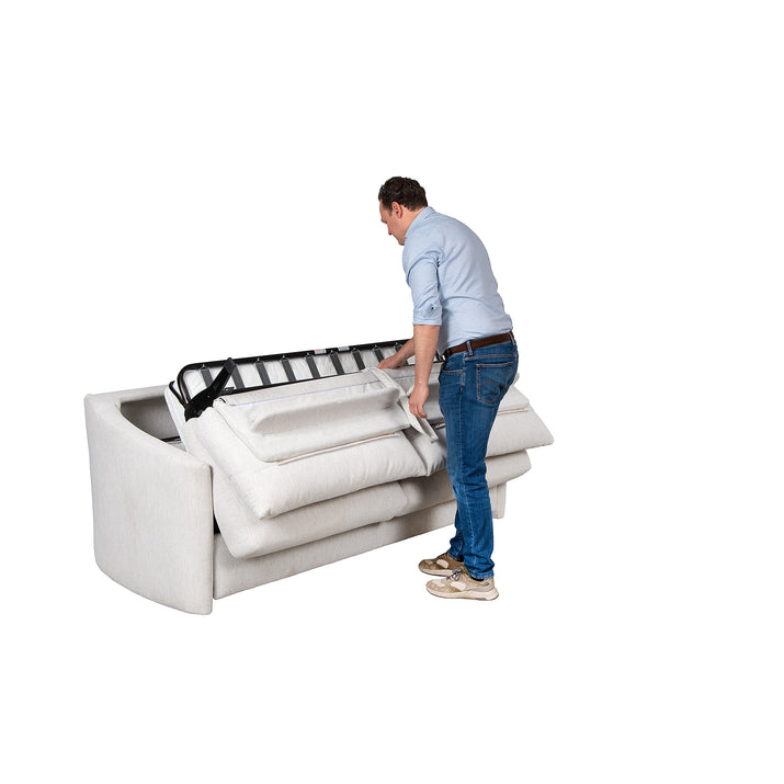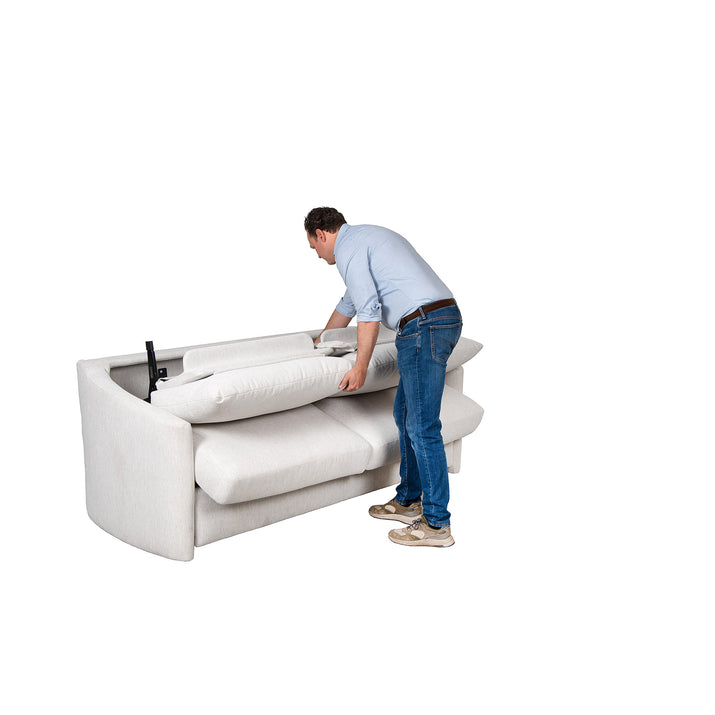 De Sofa en Slaapbank Elegance combineert stijl en functionaliteit. Deze comfortabele sofa is eenvoudig om te toveren tot een slaapbank, dankzij het gebruiksvriendelijke openingsmechanisme. De dikke matras zorgt voor een goede nachtrust, terwijl de sierkussens voor arm- en rugleuning extra comfort en een luxe uitstraling bieden. Met een aangename bedhoogte is de Elegance niet alleen praktisch, maar ook een elegante toevoeging aan je interieur. Ideaal voor zowel dagelijks sofa gebruik als voor logeergasten, biedt de Slaapbank en Sofa Elegance een veelzijdige en stijlvolle oplossing voor elke ruimte. Slaapbank Elegance is online verkrijgbaar in 5 kleuren van de vlekwerende Aquaclean stof Camila. Voor andere stoffen kan je terecht in onze Concept Store.