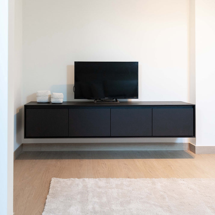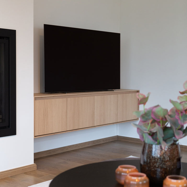 Tv kast Verso hanging valt bij iedereen in de smaak. De kastdeuren zijn voorzien van een verborgen handgreep. De fijne kopse kant met een schuine afwerking hoort thuis in een modern interieur. Deze tv-kast is voorzien van 4 deuren. Dit meubel is verkrijgbaar in verschillende kleuren en afmetingen. Ook 100 % maatwerk is mogelijk in onze Concept Store.