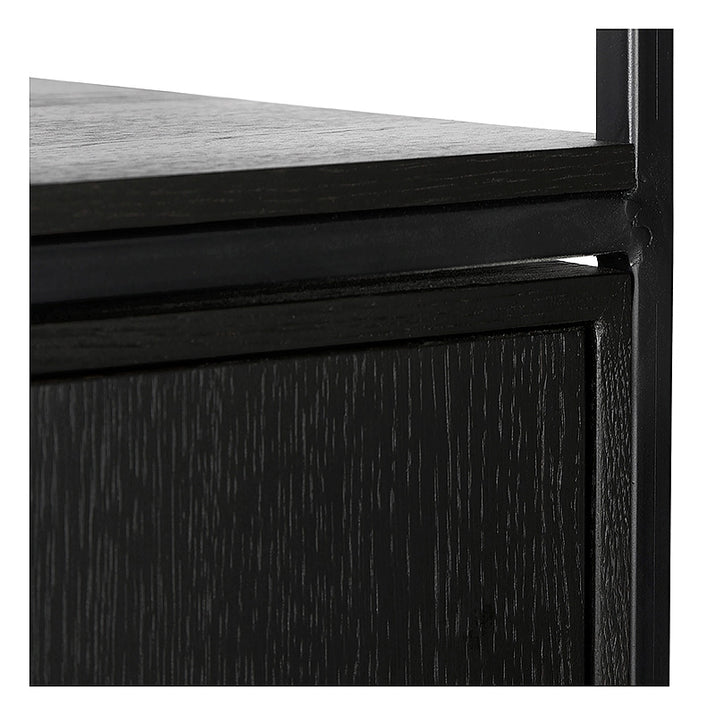 Wil je graag jouw decoratie in stijl tentoonstellen en is opbergruimte geen must? Dan is wandrek Plaza een must-have. Het zwart metalen frame hoort thuis in een modern interieur. Het wandrek staat met beide voeten stevig op de grond. De kleurkeuze van het eikenfineer is volledig naar jouw wens in te vullen. De kastdeuren zijn te openen met een push to open-systeem. De 3 racks Plaza zijn speciaal ontworpen om zowel alleenstaand als in combinatie met elkaar te shinen. Dit meubel is verkrijgbaar in verschillende kleuren en afmetingen. We werken ook op maat, dit kan je bekijken in onze Concept Store.