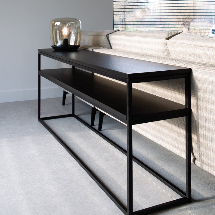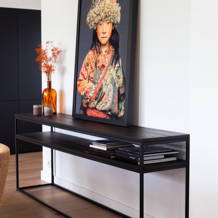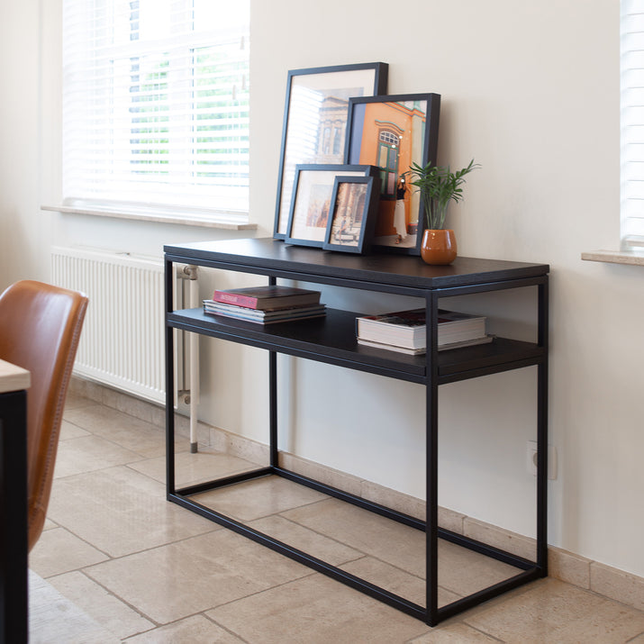 De Wandtafel Ferrum combineert een subtiele, landelijke stijl met de elegantie van metaal. Het eikenhouten blad, verkrijgbaar in diverse kleuren, rust op een sierlijk metalen onderstel dat het geheel een tijdloze uitstraling geeft. Deze wandtafel kan worden aangepast aan jouw persoonlijke voorkeuren, inclusief de optie voor schuifjes in open ruimtes, wat zorgt voor een functionele en stijlvolle toevoeging aan elk interieur. Voor maatwerk kan je best terecht in onze Concept Store.