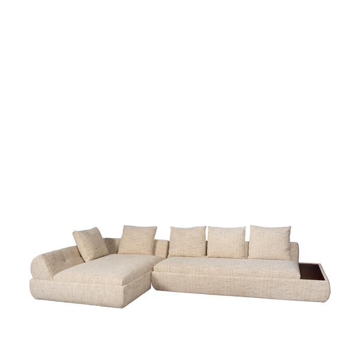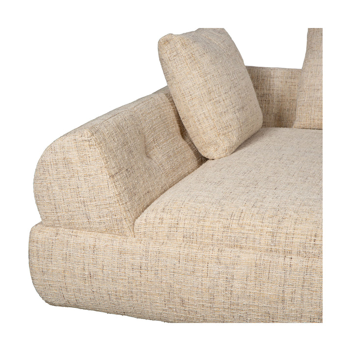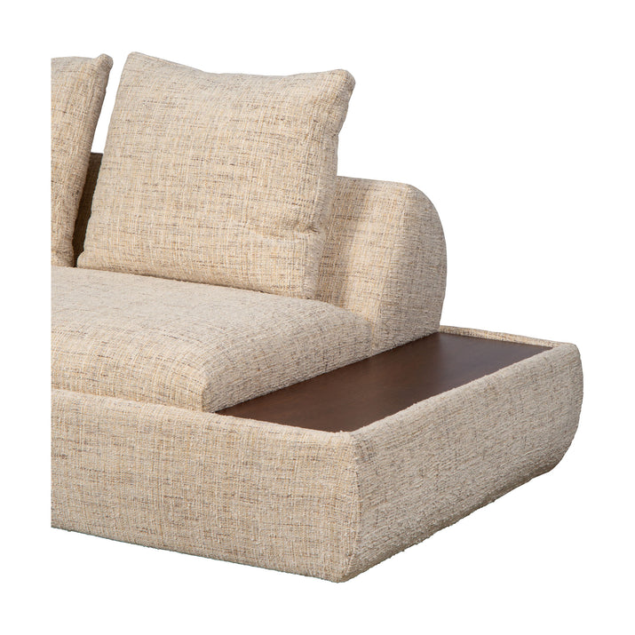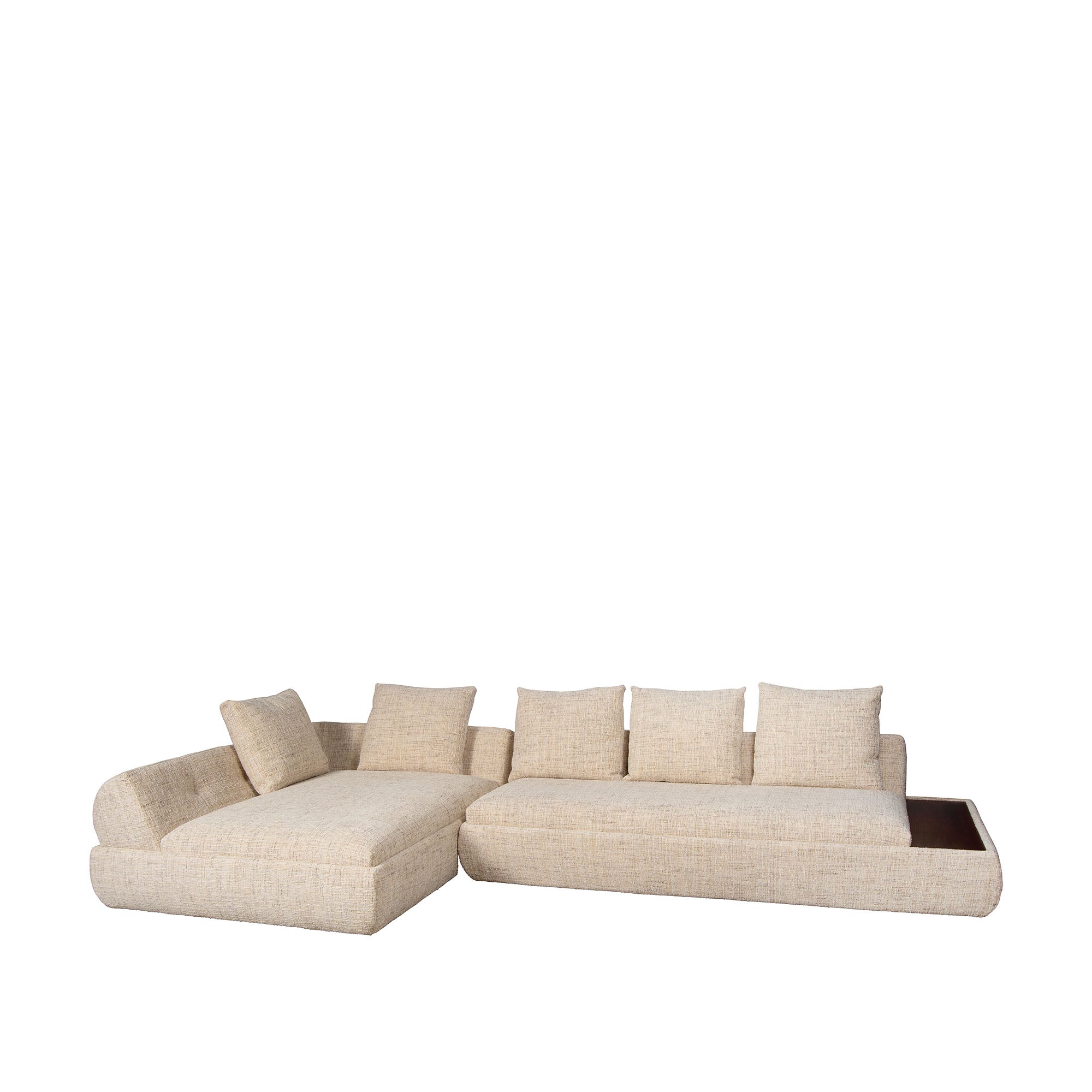 De Luna sofa, met haar elegante gebogen rug en verfijnd afgeronde armleuningen, creëert een harmonieus en modern silhouet dat meteen warmte en zachtheid uitstraalt. Het unieke houten plateau dat naadloos in het ontwerp is geïntegreerd, maakt Luna niet alleen mooi om naar te kijken, maar ook bijzonder functioneel. Ideaal om een lampje, een mooi decoratiestuk of je drankje binnen handbereik te plaatsen zonder extra bijzettafel. De vloeiende vormen en zorgvuldige afwerking geven de sofa een luxueuze uitstraling, terwijl het ontwerp uitnodigt tot ontspannen zitten. Luna is de perfecte keuze voor interieurs die comfort, elegantie en slimme functionaliteit willen combineren in één statement piece. Sofa Luna is online verkrijgbaar in 5 kleuren van de vlekwerende Aquaclean stof Camila. Voor andere stoffen of maatwerk kan je terecht in onze Concept Store.