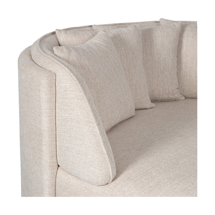 De Sofa Rondo is een prachtige, ronde sofa die een echte eyecatcher vormt in elke ruimte. Met zijn elegante afwerking en stevige rugleuning, gevuld met een zachte binnenkant, biedt deze sofa het ultieme comfort. De bijgeleverde sfeerkussens maken het geheel compleet, waardoor je een gezellig en tijdloos meubelstuk krijgt. Of je nu een moderne of klassieke inrichting hebt, de Sofa Rondo past perfect en voegt een vleugje luxe en gezelligheid toe aan je interieur. Beleef ontspanning en stijl in één met de Sofa Rondo, het perfecte middelpunt van elke woonkamer. Sofa Rondo is online verkrijgbaar in verschillende afmetingen en 5 kleuren van de vlekwerende Aquaclean stof Camila. Voor andere stoffen of maatwerk kan je terecht in onze Concept Store.